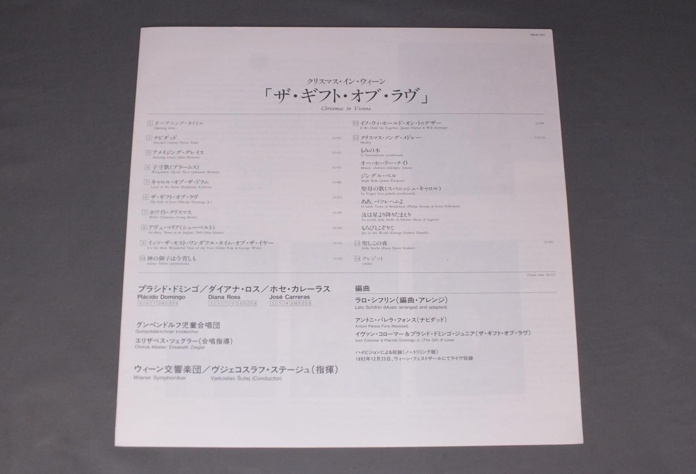 DOMINGO - ROSS - CARRERAS - SUTEJドミンゴ - ロス - カレーラス - ステージュ/CHRISTMAS IN VIENNAクリスマス・イン・ウィーン ザ・ギフト・オブ・ラヴ SRLM1070 製造国:日本盤 / Media:LD外観:EX+盤の状態:EX+帯:EX 価格(税込):¥550 送料 7inch:定形外郵便 360円~LP:定形外郵便 660円~送料は、注文の最終画面で確認頂けます。 > > DOMINGO - ROSS - CARRERAS - SUTEJ/CHRISTMAS IN VIENNA 外観 (EX+)特記事項:特記なし。外観EX+の共通説明:中古としては美品、一見してきれいでダメージが軽微。シミ、ヨゴレ、スレ有っても僅か~少し。 盤の状態 (EX+)特記事項:薄いスリキズ・スレ少し。一見してきれいな状態です。盤EX+の共通説明:盤面の極薄いスリキズ、スレ少し程度 音に出そうなものは無いように見える(極軽微なソフトティック音は除く)。 帯の状態 (EX):特記なし。 その他:見本盤 Tweet それぞれの画像をクリックすると、大きい写真が見られます こちらの商品もお勧めです 1,100円 BOULT他 / MAHLER 9 SYMPHONIES 12 LP BOX 2,750円 FURTWANGLER / WARGNER 5枚組 990円 REINER - CHICAGO SYMPHONY ORCHESTRAライナー - シカゴ交響楽団 / BARTOK - MUSIC FOR STRINGS PERCUSSION AND CELESTAバルトーク - 弦楽器と打楽器とチェレスタのための音楽 1,540円 WALTER - COLUMBIA SYMPHONY ORCHESTRAワルター - コロンビア交響楽団 / MAHLER - SYMPHONY NO1マーラー交響曲第1番 1,650円 KRAJAN + PHILHARMONIA ORCHESTRA / STEREO SHOWPIECIES FOR ORCHESTRA 3 LP BOX SET 990円 KLENPERER - PHILHARMONIA ORCH.クレンペラー - フィラデルフィア管弦楽団 / KLEMPERER CONDUCTS MORE WARGNERクレンペラー ワーグナー名曲集 1,540円 ENTREMONT - ORMANDY - PHILADELPHIA ORCHESTRAアントルモン - オーマンディ - フィラデルフィア交響楽団 / LISZT - CONCERTO NO1リスト - ピアノ協奏曲第1番 1,540円 BOHM - BERLINER PHILHARMONIKERベーム - ベルリン・フィル / SCHUBERT - SYMPHONIEN NR.5シューベルト交響曲第5番