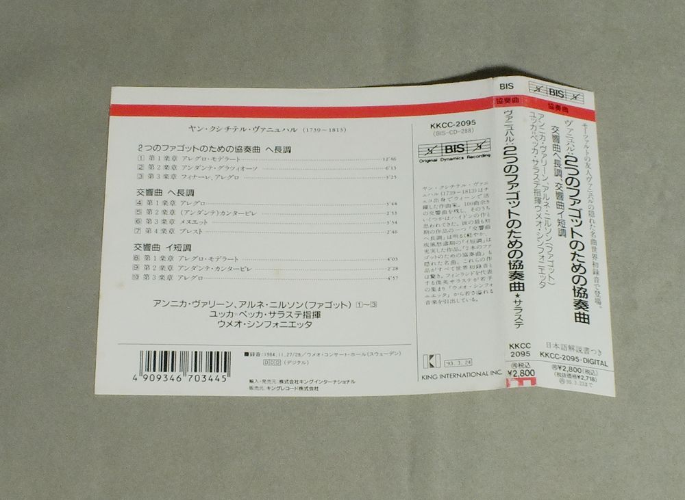 SARASTEサラステ/VANHAL - CONCERTO DUE FAGOTTIヴァニュハル - 2つのファゴットのための協奏曲 KKCC2095 製造国:日本盤 / Media:CD外観:EX盤の状態:EX+帯:EX- 価格(税込):¥2,420 送料 7inch:定形外郵便 360円~LP:定形外郵便 660円~送料は、注文の最終画面で確認頂けます。 レコード検索 > J-POP > SARASTE/VANHAL - CONCERTO DUE FAGOTTI 外観 (EX)特記事項:ヨレ、スレ、シミなど小 - 軽度です。外観EXの共通説明:ダメージが限定的。中古品としては保存状態がよい方。シミ、ヨゴレ、スレ 少し~軽度。 盤の状態 (EX+)特記事項:微細なスリキズが少々。きれいな感じの盤面です。盤EX+の共通説明:盤面の極薄いスリキズ、スレ少し程度 音に出そうなものは無いように見える(極軽微なソフトティック音は除く)。 帯の状態 (EX-):背にヨレや破れ小。シミが少し。 Tweet それぞれの画像をクリックすると、大きい写真が見られます こちらの商品もお勧めです 1,540円 LAWRENCE FOSTER - HOUSTON SYMPHONY ORCHESTRAローレンス・フォスター - ヒューストン交響楽団 / PAUL CHIHARA - SYMPHONY IN CELEBRATIONポール・チハラ - SYMPHONY IN CELEBRATION 1,540円 HAGER - MOZAARTEUM ORCHESTER SALZBURGレオポルト・ハーガー - ザルツブルク・モーツァルテウム管弦楽団 / MOZART - THAMOS KING OF EGYPT 990円 BRENDEL - MARRTNER - ACADEMY OF ST.MARTIN IN THE FIELDSブレンデル - マリナー - アカデミー室内管弦楽団 / MOZRT - PIANO CONCERTOS NO19 NO23モーツァルト - ピアノ協奏曲第19番23番 990円 STOKOVSKI - RCA SYMPHONY ORCHESTRAストコフスキー - RCA交響楽団 / LISZT - HUNGARIAN RHAPSODYリスト - ハンガリー狂詩曲 990円 CLUYTENS - PARIS CONSERVATOIRE ORCH.クリュイタンス - パリ音楽院管弦楽団 / FAURE - REQUIEMフォーレ - レクイエム 2,200円 BOULT + LONDON PHILHARMONIC ORCHESTRA / VAUGHAN WILLIAMS - THE NINE SYMPHONIES 9 LP BOX 2,750円 FURTWANGLER / WARGNER 5枚組 1,540円 1CLAUDIO SCIMONE - I SOLISTI VENETIクラウディオ シモーネ - イ・ソリスティ・ヴェネティ / PROMO ONLY特別試聴盤 (見本盤)