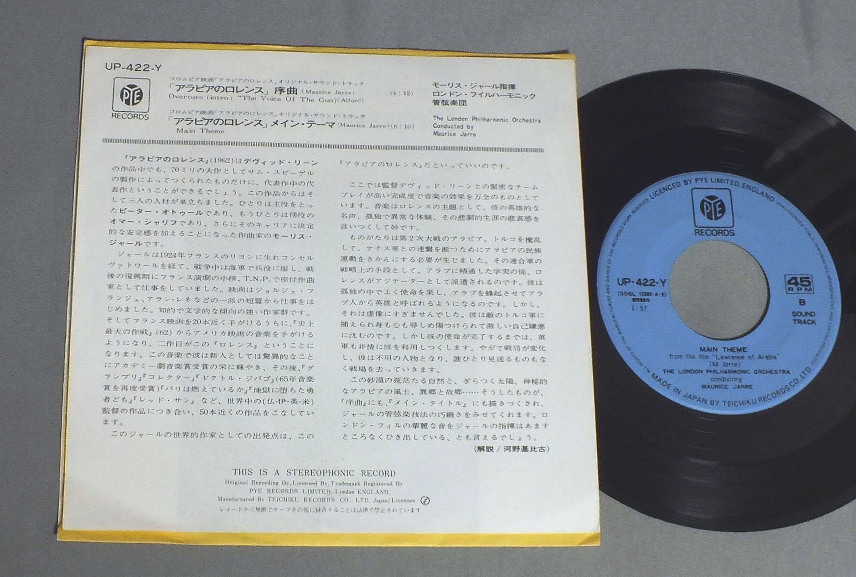 MAURICE JARREモーリス・ジャール/OVERTURE FROM THE FILM LAWRENCE OF ARABIA映画アラビアのロレンスよりアラビアのロレンス序曲 UP422Y 製造国:日本盤 / Media:7inch外観:EX+盤の状態:EX 価格(税込):¥660 送料 7inch:定形外郵便 360円~LP:定形外郵便 660円~送料は、注文の最終画面で確認頂けます。 > > MAURICE JARRE/OVERTURE FROM THE FILM LAWRENCE OF ARABIA 外観 (EX+)特記事項:ヨレ少々。外観EX+の共通説明:中古としては美品、一見してきれいでダメージが軽微。シミ、ヨゴレ、スレ有っても僅か~少し。 盤の状態 (EX)特記事項:長めのスレキズがありますが、音には影響ない感じの薄いスレです。盤EXの共通説明:盤面のスリキズが薄いものが少し~軽度 音に出そうなものは無いように見える(軽微なソフトティック音は除く)。 Tweet それぞれの画像をクリックすると、大きい写真が見られます こちらの商品もお勧めです 990円 OLIVIA NEWTON-JOHN etcオリビア・ニュートンジョン他 / TWO OF A KINDサントラ・セカンド・チャンス 1,210円 BRUCE LEEブルース・リー / IN THE BIG BOSSサントラ・ドラゴン危機一発 990円 ORIGINAL SOUND TRACKオリジナル・サウンド・トラック / CHITTY CHITTY BANG BANGチキ・チキ・バン・バン 1,320円 IRWIN ALLENアーウィン・アレン作品 / TOWERING INFERNO映画タワーリング・インフェルノ 770円 CLAUDE LELOUCHクロード・ルルーシュ / LES UNS ET LES AUTRES映画 愛と哀しみのボレロ 770円 JOHN ADDISONジョン・アディスン監督 / SOUNDTRACK BRIDGE TOO FAR映画 遠すぎた橋 1,650円 MOMOE YAMAGUCHI & TOMOKAZU MIURA山口百恵と三浦友和 / WHITE LOVEホワイト・ラブ 1,320円 JERRY GOLDSMITHジェリー・ゴールドスミス / STAR TREK THE MOTION PICTUREスター・トレック
