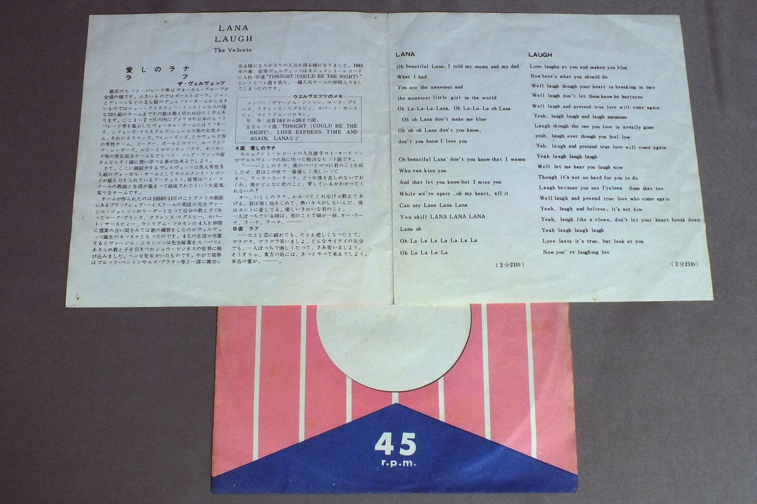 VELVETSヴェルヴェッツ/LANA愛しのラナ HIT200 製造国:日本盤 / Media:7inch外観:EX-盤の状態:VG 価格(税込):¥550 送料 7inch:定形外郵便 360円~LP:定形外郵便 660円~送料は、注文の最終画面で確認頂けます。 レコード検索 > FEMALE > VELVETS/LANA 外観 (EX-)特記事項:背スレやシミ有り。背下に破れ小。外観EX-の共通説明:ダメージ軽度~多少。 中古品としては普通の状態。シミ、ヨゴレ、スレなど軽く~多少。 盤の状態 (VG)特記事項:スリキズ、スレ多め。プチ出そうなものも多少有り。盤VGの共通説明:盤面にスリキズがやや有り、音に出そうなものも所々有る。 Tweet それぞれの画像をクリックすると、大きい写真が見られます こちらの商品もお勧めです 1,210円 TEMPTATIONSテンプテーションズ / BACK TO BASICSバック・トゥー・ベイシックス 770円 COMMODORESコモドアーズ / MIDNIGHT MAGICミッドナイト・マジック 1,210円 DRAMATICSドラマティックス / 10 1/2テン・アンド・ハーフ 770円 DAZZ BAND / ON THE ONE 660円 STEVIE WONDER / IN SQUARE CIRCLE 660円 DIONNE WARWICKディオンヌ・ワーウィック / HOW MANY TIMES CAN WE SAY GOODBYEさよならは一度だけ 1,320円 DIANA ROSSダイアナ・ロス / ROSSロス 1,210円 GRANDMASTER FLASHグランドマスター・フラッシュ / SOURCEソース