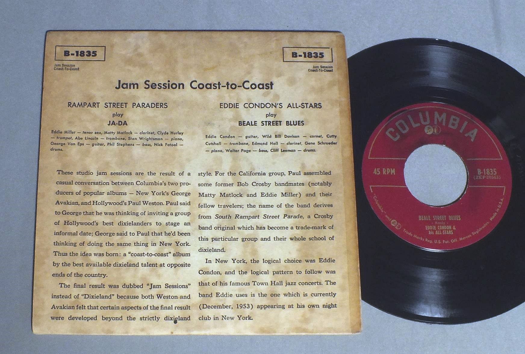 EDDIE CONDON`S ALL-STARS - RAMPART STREET PARADERS/JAM SESSION COAST-TO-COAST COLUMBIA B1835 製造国:米国盤 / Media:7inch外観:VG盤の状態:VG+ 価格(税込):¥770 送料 7inch:定形外郵便 360円~LP:定形外郵便 660円~送料は、注文の最終画面で確認頂けます。 > > EDDIE CONDON`S ALL-STARS - RAMPART STREET PARADERS/JAM SESSION COAST-TO-COAST 外観 (VG)特記事項:背割れにテープ補修。ヘリや裏側にシミ。外観VGの共通説明:ダメージが見るからに多い。 盤の状態 (VG+)特記事項:薄いスリキズ・細かいスレ多少。プチ出そうな小キズ、線キズも有ります。少し聴いてみましたが、音自体はしっかりクリアーに鳴っているようでした。盤VG+の共通説明:盤面にスリキズが多少~やや有り、音に出そうなものも多少ある。 その他:エッジに割れ。レーベルにヨゴレ有り。 Tweet それぞれの画像をクリックすると、大きい写真が見られます こちらの商品もお勧めです 1,650円 HERBIE MANN / RETURNS TO THE VILLAGE GATE 990円 MILESTONE JAZZSTARS (MCCOY TYNER - SONNY ROLLINS - RON CARTER - AL FOSTER) / IN CONCERT 1978 1,210円 PETER SPRAGUE / MUSICA DEL MAR 990円 RAY MC KINLEY - BERNIE PRIVIN - PEANUTS HUCKO etc / JAZZMEN IN UNIFORM PARIS 1945 1,980円 ART HEATLIE / SOUL HITS-SAX STYLE 770円 ERROLL GARNER / PLAYS ERROLL GARNER 1,650円 MONGO SANTAMARIA / MONGOMANIA 1,100円 DAVID AMRAM / DAVID AMRAM`S LATIN-JAZZ CELEBRATION