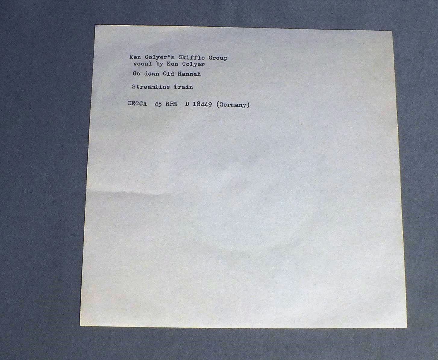 KEN COLYER`S SKIFFLE GROUP/GO DOWN OLD HANNAH DECCA D18449 製造国:独盤 / Media:7inch盤の状態:VG+ 価格(税込):¥770 送料 7inch:定形外郵便 360円~LP:定形外郵便 660円~送料は、注文の最終画面で確認頂けます。 > > KEN COLYER`S SKIFFLE GROUP/GO DOWN OLD HANNAH 盤の状態 (VG+)特記事項:薄いスリキズ・細かいスレやや多め。プチ出そうな小キズ、線キズは数カ所で、全体的には軽微なものが中心です。少し聴いてみましたが、音自体はしっかりクリアーに鳴っているようでした。盤VG+の共通説明:盤面にスリキズが多少~やや有り、音に出そうなものも多少ある。 Tweet それぞれの画像をクリックすると、大きい写真が見られます こちらの商品もお勧めです 1,100円 BUD FREEMAN WITH CAMBRIDGE CITY JAZZBAND / BUD FREEMAN TAPES 1,100円 BOB WILBER & KENNY DAVERN / SOPRANO SUMMIT IN CONCERT 770円 JOHNNY WIGGS etc / RECORDED IN NEW ORLEANS VOL2 880円 CHICAGO CONNECTION / JAZZ ME BLUES 550円 GENE KRUPA / AT THE CLICK PHILADELPHIA 1947 2,200円 RED NORVO / MAINSTREAM JAZZ 770円 COLMAN HAWKINS ROY ELDRIDGE PETE BROWN JO JONES ALL STARS / NEWPORT YEARS 770円 GATO BARBIERI / TROPICO