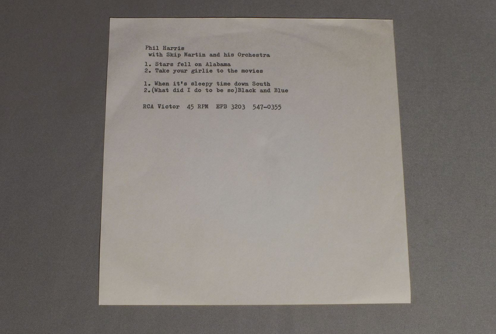 PHIL HARRIS/STARS FELL ON ALABAMA RCA 547 0355 製造国:米国盤 / Media:7inch盤の状態:VG+ 価格(税込):¥330 送料 7inch:定形外郵便 360円~LP:定形外郵便 660円~送料は、注文の最終画面で確認頂けます。 > > PHIL HARRIS/STARS FELL ON ALABAMA 盤の状態 (VG+)特記事項:薄いスリキズ・細かいスレ多少。プチ出そうな小キズ、線キズも有ります。少し聴いてみましたが、音自体はしっかりクリアーに鳴っているようでした。盤VG+の共通説明:盤面にスリキズが多少~やや有り、音に出そうなものも多少ある。 その他:レーベルに破れ。 Tweet それぞれの画像をクリックすると、大きい写真が見られます こちらの商品もお勧めです 1,650円 JULIE WILSON / SINGS KURT WEILL SONGBOOK 770円 BOB CROSBY / THE HITS OF BOB CROSBY`S BOBCAST 1,210円 TERESA BREWER & THE WORLD`S GREATEST JAZZ BAND / GOOD NEWS (RALPH SUTTON AUTOGRAPHED)GOOD NEWS (RALPH SUTTONサイン付) 550円 MEL TORME / `ROUND MIDNIGHT 1,210円 BILLY ECKSTINE / SWINGING MR.B 770円 JOHN GARY / CATCH A RISING STAR 660円 JOAN MORRIS WILLIAM BOLCOMジョーン・モリス- ウィリアム・ボルコム / AFTER THE BALL- A TREASURY OF TURN OF THE CENTURY POPULAR SONGS舞踏会のあとで アメリカン・ヒット・ソングの黎明期 440円 DICK HAYMES / DICK HAYMES SINGS