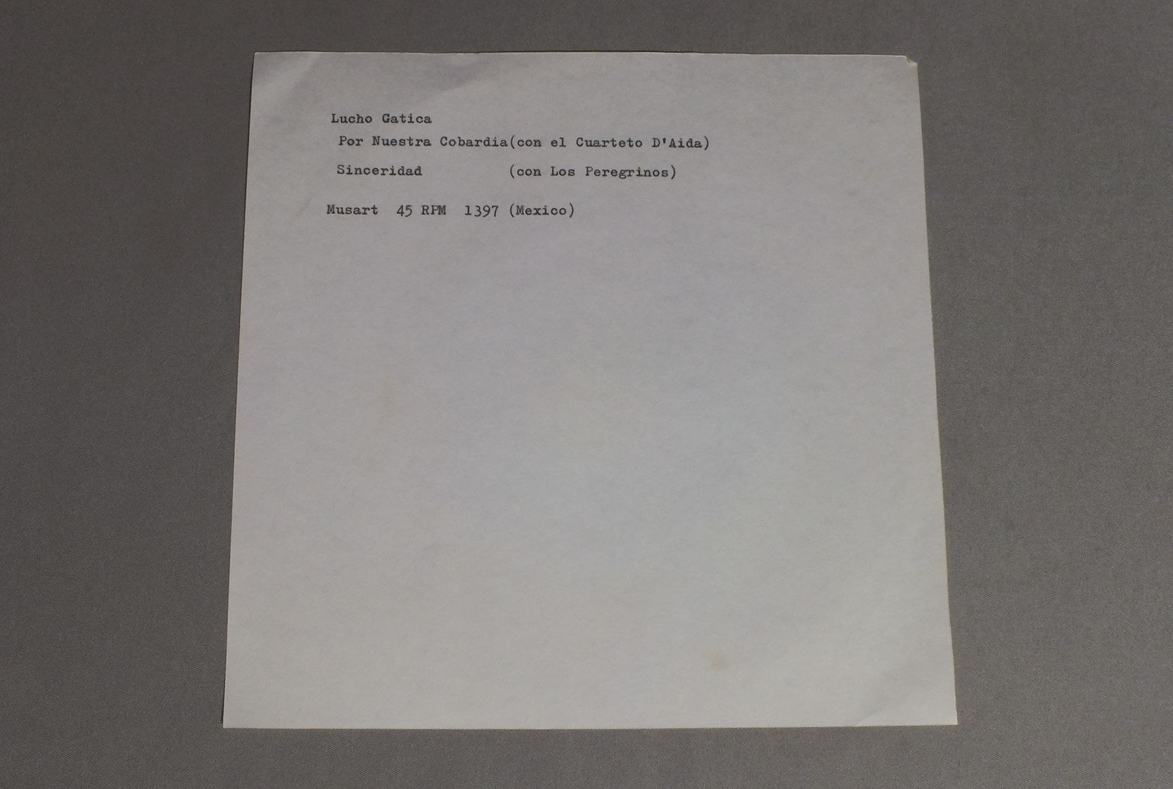 LUCHO GATICA/POR NUESTRA COBARDIA 1397 製造国:米国盤 / Media:7inch盤の状態:VG+ 価格(税込):¥330 送料 7inch:定形外郵便 360円~LP:定形外郵便 660円~送料は、注文の最終画面で確認頂けます。 レコード検索 > CLASSIC CHAMBER > LUCHO GATICA/POR NUESTRA COBARDIA 盤の状態 (VG+)特記事項:薄いスリキズ・細かいスレ多少。全体的には軽微なものが中心です。少し聴いてみましたが、音自体はしっかりクリアーに鳴っているようでした。盤VG+の共通説明:盤面にスリキズが多少~やや有り、音に出そうなものも多少ある。 Tweet それぞれの画像をクリックすると、大きい写真が見られます こちらの商品もお勧めです 770円 CHARLIE RICH / NOBODY BUT YOU 770円 ROBBIE NEVIL / PLACE LIKE THIS 770円 ROGER MILLER / ROGER MILLER THE AMAZING 770円 DON HENLEY / I CAN`T STAND STILL 990円 LITTLE STEVEN AND THE DISCIPLES SOUL / MEN WITHOUT WOMEN 880円 GERARD HOFFNUNG / HOFFNUNG 550円 RONNIE MILSAP / ONLY ONE LOVE IN MY LIFE 880円 GINO VANNELLI / GIST OF THE GEMINI