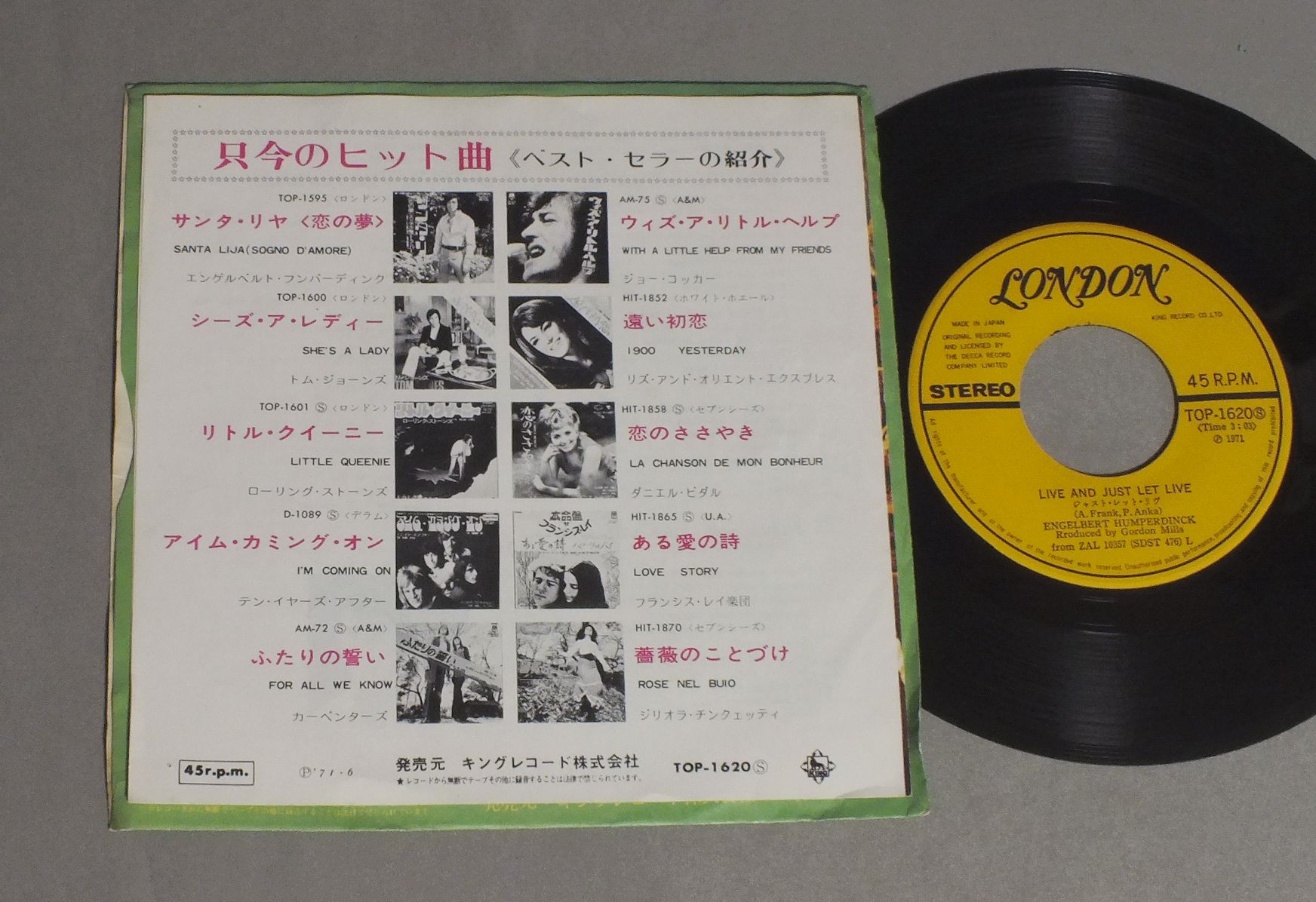 ENGELBERT HUMPERDINCKエンゲルベルト・フンパーディンク/WHEN THERE`S NO YOUひとりゆく路 TOP1620 製造国:日本盤 / Media:7inch外観:EX盤の状態:EX- 価格(税込):¥440 送料 7inch:定形外郵便 360円~LP:定形外郵便 660円~送料は、注文の最終画面で確認頂けます。 レコード検索 > CLASSIC CHAMBER > ENGELBERT HUMPERDINCK/WHEN THERE`S NO YOU 外観 (EX)特記事項:右下にホチキス跡。 ヨレ有り。外観EXの共通説明:ダメージが限定的。中古品としては保存状態がよい方。シミ、ヨゴレ、スレ 少し~軽度。 盤の状態 (EX-)特記事項:薄いスリキズ・細かい表面スレ軽くある感じ。全体的には殆どが軽微なものの様子です。盤EX-の共通説明:盤面のスリキズが多少有り。音に出そうなものは殆ど無いように見える~さほど気にならないぐらいの軽いプチ数カ所程度。 Tweet それぞれの画像をクリックすると、大きい写真が見られます こちらの商品もお勧めです 1,210円 TOMMY SHAWトミー・ショウ / GIRLS WITH GUNSガール・ウィズ・ガン 1,320円 NEIL DIAMONDニール・ダイアモンド / HOT AUGUST NIGTグリーク・シアター・コンサート 770円 PETER ALLENピーター・アレン / BI-COASTALバイ・コースタル 880円 NEIL DIAMONDニール・ダイアモンド / NEIL DIAMONDアイム・ア・ビリーバー 660円 JOHN DENVERジョン・デンバー / BACK HOME AGAINバック・ホーム・アゲイン 1,210円 PAUL PARRISHポール・パリッシュ / SONG FOR A YOUNG GIRLソング・フォー・ア・ヤング・ガール 1,650円 ELTON JOHNエルトン・ジョン / ELTON JOHNエルトン・ジョン 2,420円 BILLY JOELビリー・ジョエル / NYLON CURTEN MASTER SOUND PRESSINGナイロン・カーテン(マスター・サウンド盤)