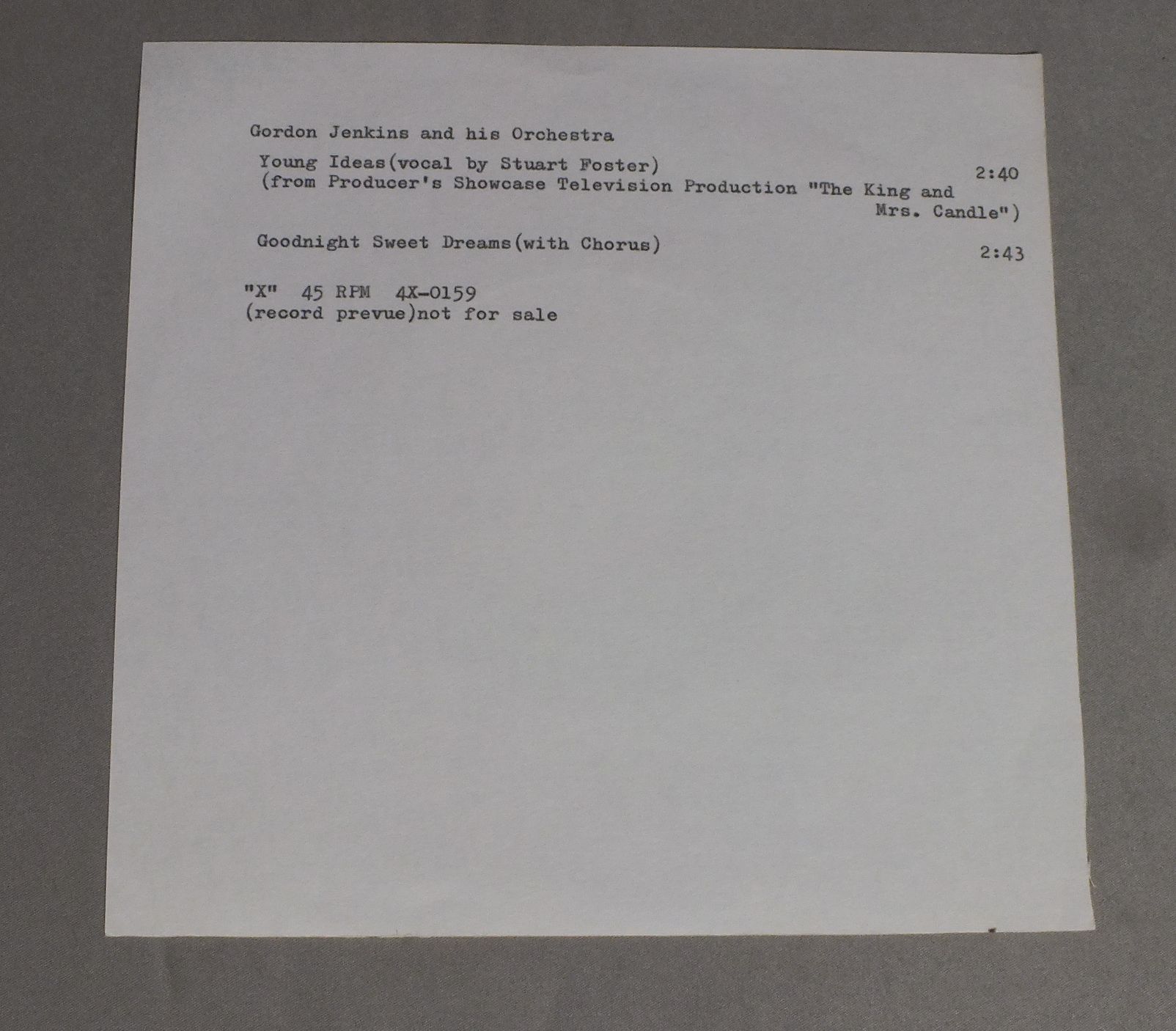 GORDON JENKINS/YOUNG IDEAS X 4X0159 製造国:米国盤 / Media:7inch盤の状態:VG+ 価格(税込):¥440 送料 7inch:定形外郵便 360円~LP:定形外郵便 660円~送料は、注文の最終画面で確認頂けます。 > > GORDON JENKINS/YOUNG IDEAS 盤の状態 (VG+)特記事項:薄いスリキズ・細かいスレ多少。プチ出そうな小キズ、線キズも有ります。少し聴いてみましたが、音自体はしっかりクリアーに鳴っているようでした。盤VG+の共通説明:盤面にスリキズが多少~やや有り、音に出そうなものも多少ある。 その他:白見本盤 レーベルに書込みやテープ跡。 Tweet それぞれの画像をクリックすると、大きい写真が見られます こちらの商品もお勧めです 1,650円 WOODY HERMANウディ・ハーマン / THUNDERING HERDS 3LP BOX SETTHUNDERING HERDS 3枚組 550円 LIONEL HAMPTON / STEPIN` OUT 1,210円 SACKVILLE ALL STAR / CHRISTMAS RECORD (RALPH SUTTON AUTOGRAPHED)CHRISTMAS RECORD (RALPH SUTTONサイン付) 770円 OLIVER LAKE & JUMP UP / PLUG IT 1,650円 SCOTT HAMILTON-BUDDY TATE / SCOTT`S BUDDY 1,100円 RAINIER JAZZ BAND / CAKEWALK INTO TOWN 1,210円 RALPH SUTTON / COSENZA JAZZ WORKSHOP AUTOGRAPHEDCOSENZA JAZZ WORKSHOP サイン付 1,320円 SHARKEY AND HIS KINGS OF DIXIELAND / MIDNIGHT ON BOURBON STREET