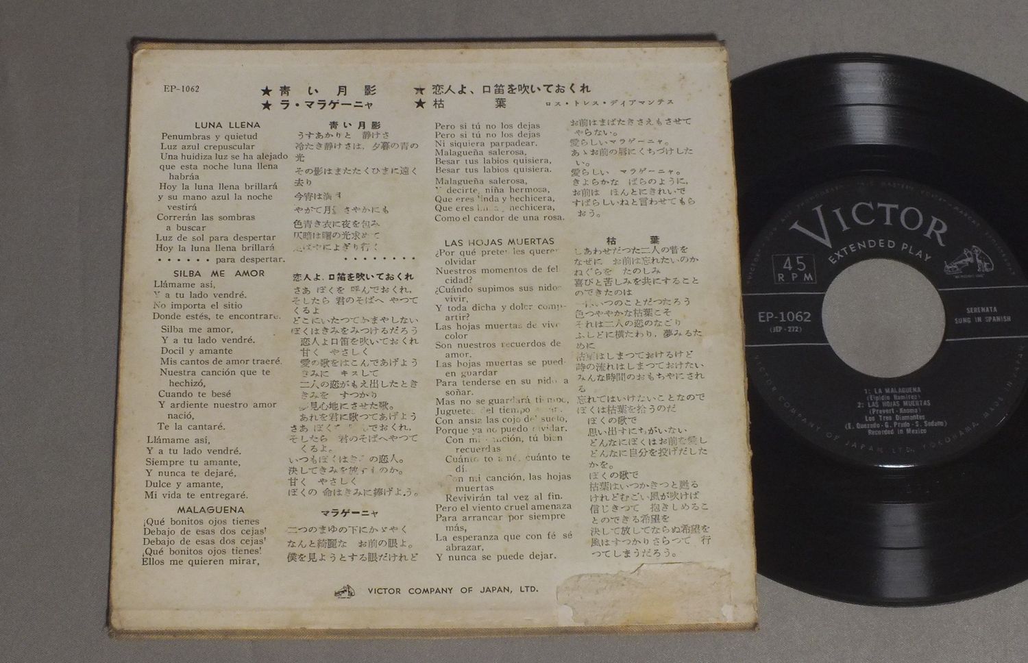 LOS TRES DIAMANTESロス・トレス・ディアマンテス/LUNA LLENA青い月影 45EP1062 製造国:日本盤 / Media:7inch外観:VG+盤の状態:EX- 価格(税込):¥770 送料 7inch:定形外郵便 360円~LP:定形外郵便 660円~送料は、注文の最終画面で確認頂けます。 レコード検索 > QUEEN > LOS TRES DIAMANTES/LUNA LLENA 外観 (VG+)特記事項:背スレ大。裏側破れ。薄いシミ多少有り。外観VG+の共通説明:ダメージやや有り。シミ、ヨゴレ、スレなど多少~やや多め。 盤の状態 (EX-)特記事項:薄いスリキズ・細かい表面スレ多少ある感じです。プチ出そうな所は少し。軽微なものが中心の様子です。盤EX-の共通説明:盤面のスリキズが多少有り。音に出そうなものは殆ど無いように見える~さほど気にならないぐらいの軽いプチ数カ所程度。 Tweet それぞれの画像をクリックすると、大きい写真が見られます こちらの商品もお勧めです 550円 JOSE VELAZQUEZホセ・ヴェラスケス / JOSE VELAZQUEZ GOLDEN BEST 16ホセ・ヴェラスケス・ゴールデン・ベスト 16 770円 DIEGO EL PEROTE-M.DE MARCHENA-A.VARGAS etcディエゴ・エル・ペローテ-メルチョール・デ・マルチェーナ-アントニオ・バルガス 他 / CAFE CHINITAS美しきマラガの詩情 770円 PEREZ PRADO & HIS ORCHESTRAペレス・プラード楽団 / PEREZ PRADO VOL 1ペレス・プラード・ベスト VOL 1 770円 ENSEMBLE CIPRIAN PORUMBESCU etcチブリアン・ポルムベスク楽団他 / RUMANIAルーマニア - 笛と民謡と踊り(フィリップス民俗音楽世界地図6) 770円 CYMBALUM TSIGANEジプシーの音楽 / HUNGARIAN CIMBALOMハンガリーのツインバロム 1,210円 BOLIVIA & PERU TRADITIONAL MUSIC民族音楽シリーズ ボリビアとペルーの伝統音楽 / FESTIVAL & DANCING OF ANDESアンデスの祭りと踊り 770円 JOSE ROMEROホセ・ロメロ / ANDALUCIA FLAMENCA EN EL PIANO DE JOSE ROMEROエル・ビート ホセ・ロメロ-ピアノ・フラメンコの詩情 第2集 1,210円 TERREMOTO BORRICO SORDERA etcテレモート ボリーコ ソルデーラ 他 / CANTA JEREZ VOL2ヘレスに生きるフラメンコの伝統 第2集