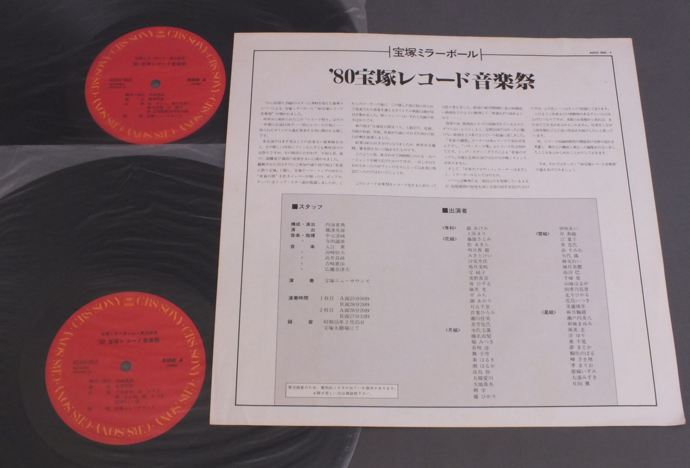TAKARAZUKA宝塚歌劇団/RECORD FESTA 1980`80 宝塚レコード音楽祭 40AH966-7 製造国:日本盤 / Media:LP外観:EX盤の状態:EX帯:EX+ 価格(税込):¥550(売約済) 送料 7inch:定形外郵便 360円~LP:定形外郵便 660円~送料は、注文の最終画面で確認頂けます。 > > TAKARAZUKA/RECORD FESTA 1980 外観 (EX)特記事項:特記なし。外観EXの共通説明:ダメージが限定的。中古品としては保存状態がよい方。シミ、ヨゴレ、スレ 少し~軽度。 盤の状態 (EX)特記事項:薄いスリキズ・スレ少しある感じ。一見してきれいな感じです。盤EXの共通説明:盤面のスリキズが薄いものが少し~軽度 音に出そうなものは無いように見える(軽微なソフトティック音は除く)。 帯の状態 (EX+):特記なし。 Tweet それぞれの画像をクリックすると、大きい写真が見られます こちらの商品もお勧めです 770円 ORIGINAL CAST RECORDINGブロードウェイ・オリジナル・キャスト / TANGO ARGENTINO ORIGINAL CAST RECORDINGタンゴ・アルヘンティーノ 770円 LIZA MINNELLIライザ・ミネリ / CABARET ORIGINAL SOUND TRACK映画 キャバレー 880円 RAN OTORI & JUN ANNA鳳蘭 & 安奈淳 / SING LOVE愛を歌う 660円 RICHARD ATTENBOROUGHリチャード・アッテンボロー監督 / SOUND TRACK CHORUS LINE映画 コーラスライン