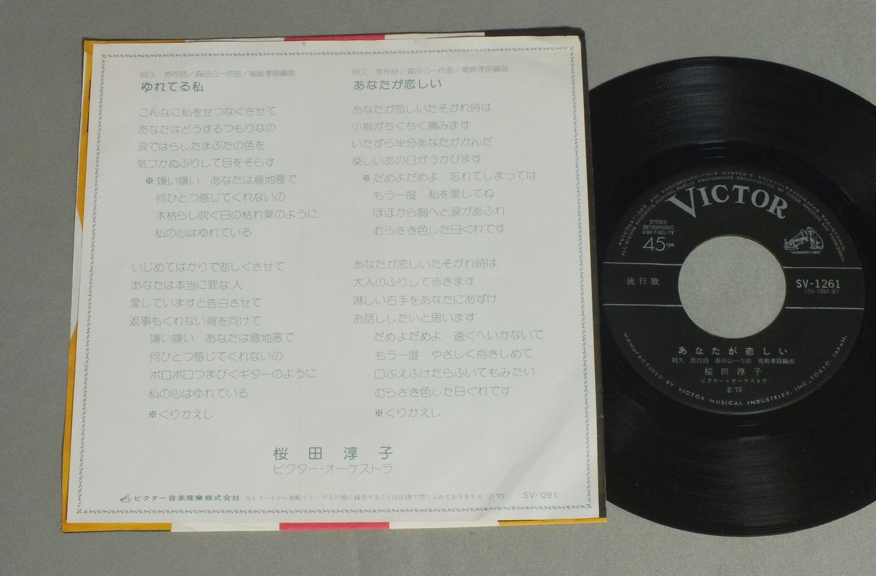 JUNKO SAKURADA桜田淳子/YURETERU WATASHIゆれてる私 SV1261 製造国:日本盤 / Media:7inch外観:EX盤の状態:EX 価格(税込):¥550 送料 7inch:定形外郵便 360円~LP:定形外郵便 660円~送料は、注文の最終画面で確認頂けます。 レコード検索 > J-POP > JUNKO SAKURADA/YURETERU WATASHI 外観 (EX)特記事項:特記なし。外観EXの共通説明:ダメージが限定的。中古品としては保存状態がよい方。シミ、ヨゴレ、スレ 少し~軽度。 盤の状態 (EX)特記事項:薄いスリキズ・スレ少しある感じ。一見してきれいな感じです。盤EXの共通説明:盤面のスリキズが薄いものが少し~軽度 音に出そうなものは無いように見える(軽微なソフトティック音は除く)。 Tweet それぞれの画像をクリックすると、大きい写真が見られます こちらの商品もお勧めです 770円 SEIKO MATSUDA松田聖子 / SEIKO TOWN 550円 SONOKO KAWAI河合その子 / SONOKOその子 880円 MOMOE YAMAGUCHI山口百恵 / 16s THEME16才のテーマ 1,210円 PINK LADYピンク・レディー / `78 JUMPING SUMMER CARNIVAL`78 ジャンピング・サマー・カーニバル 770円 SEIKO MATSUDA松田聖子 / CANDYキャンディー 770円 NAOKO KAWAI河合奈保子 / LOVEラブ 990円 SONOKO KAWAI河合その子 / MODE DE SONOKOモード・デ・その子 770円 MIKI ASAKURA麻倉末稀 / LOVE AGAIN