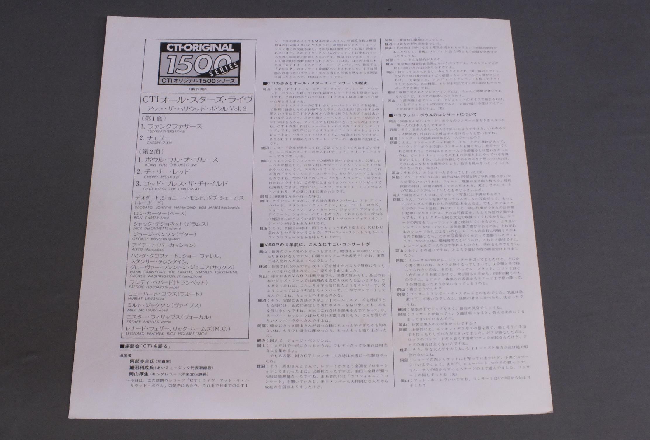 CTI ALL STARSCTIオール・スターズ/AT THE HOLLYWOOD BOWL LIVE THREEアット・ザ・ハリウッド・ボウルVOL.3 LAX3238 製造国:日本盤 / Media:LP外観:EX-盤の状態:EX帯:EX 価格(税込):¥2,303(売約済) 送料 7inch:定形外郵便 360円~LP:定形外郵便 660円~送料は、注文の最終画面で確認頂けます。 > > CTI ALL STARS/AT THE HOLLYWOOD BOWL LIVE THREE 外観 (EX-)特記事項:底抜け大。外観EX-の共通説明:ダメージ軽度~多少。 中古品としては普通の状態。シミ、ヨゴレ、スレなど軽く~多少。 盤の状態 (EX)特記事項:薄いスリキズ・スレ軽くある感じ。殆どが軽微なものの様子です。盤EXの共通説明:盤面のスリキズが薄いものが少し~軽度 音に出そうなものは無いように見える(軽微なソフトティック音は除く)。 帯の状態 (EX):シミ軽有り。 Tweet それぞれの画像をクリックすると、大きい写真が見られます こちらの商品もお勧めです 1,210円 GEORGE BENSONジョージ・ベンソン / G.B.BOOKG・B・ブック 880円 MEZZOFORTEメゾフォルテ / SURPRISE SURPRISEガーデン・パーティ 770円 STANLEY CLARKEスタンリークラーク / STANLEY CLARKE 1,650円 TAKASHI KAKO加古隆 / TOSCANINI EDITIONAソロ・コンサート 1,320円 L.A.4エル・エー・フォー / MONTAGEモンタージュ 440円 TOM GRANTトム・グラント / TAKE ME TO YOUR DREAMユア・ドリーム 1,210円 AL DI MEOLAアル・ディ・メオラ / SPLEMDIDO HOTELスプレンディド・ホテル 8,800円 JUN FUKAMACHI深町純 / `86 SPRING & SUMMER COLLECTIONニコル '86 スプリング・アンド・サマー・コレクション