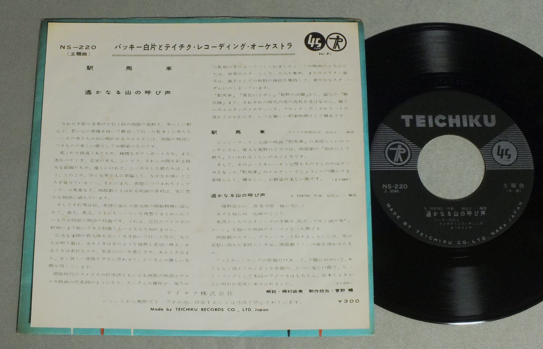 BUKY SHIRAKATA & TEICHIKU RECORDING ORCHESTRAバッキー白片とテイチク・レコーディング・オーケストラ/STAGECOACH駅馬車 NS220 製造国:日本盤 / Media:7inch外観:EX盤の状態:EX+ 価格(税込):¥1,980 送料 7inch:定形外郵便 360円~LP:定形外郵便 660円~送料は、注文の最終画面で確認頂けます。 > > BUKY SHIRAKATA & TEICHIKU RECORDING ORCHESTRA/STAGECOACH 外観 (EX)特記事項:シミ有り。外観EXの共通説明:ダメージが限定的。中古品としては保存状態がよい方。シミ、ヨゴレ、スレ 少し~軽度。 盤の状態 (EX+)特記事項:薄いスリキズ・スレ少し。一見してきれいな状態です。盤EX+の共通説明:盤面の極薄いスリキズ、スレ少し程度 音に出そうなものは無いように見える(極軽微なソフトティック音は除く)。 Tweet それぞれの画像をクリックすると、大きい写真が見られます こちらの商品もお勧めです 1,320円 CHARLIE MINGUSチャーリー・ミンガス / PITHECANTHROPUS ERECTUS直立猿人 1,210円 WOODY HERMANウディ・ハーマン / SECOND HERDセカンド・ハード 1,210円 MODERN JAZZ QUARTETモダン・ジャズ・カルテット / THIS ONE`S FOR BASIEジス・ワンズ・フォー・ベイシー 1,210円 JACK SHELDON & HIS WEST COAST FRIENDSジャック・シェルドンとヒズ・ウェスト・コースト・フレンズ / ANGEL WINGSエンジェル・ウィングス 1,210円 EDDIE CONDON & OTHERSエディ・コンドン・アンド・アザーズ / CHICAGO&ALL THAT JAZZ!シカゴ・アンド・オール・ザット・ジャズ! 880円 JOE SULLIVAN-JESS STACY-WILLIE THE LION SMITH etcジョー・ブシュキン-ジェス・スティシー-ウィリーザ・ライオンスミス 他 / CHAIRMEN OF THE BOARD VOL2ピアノ・ジャズの競演 第2集 1,210円 THAD JONES & MEL LEWISサド・ジョーンズ&メル・ルイス・オーケストラ / POTPOURRIポプーリ 770円 BENNY GOODMANベニー・グッドマン他 / MR BENNY GOODMAN (BENNY GOODMAN STORY)映画ベニー・グッドマン物語