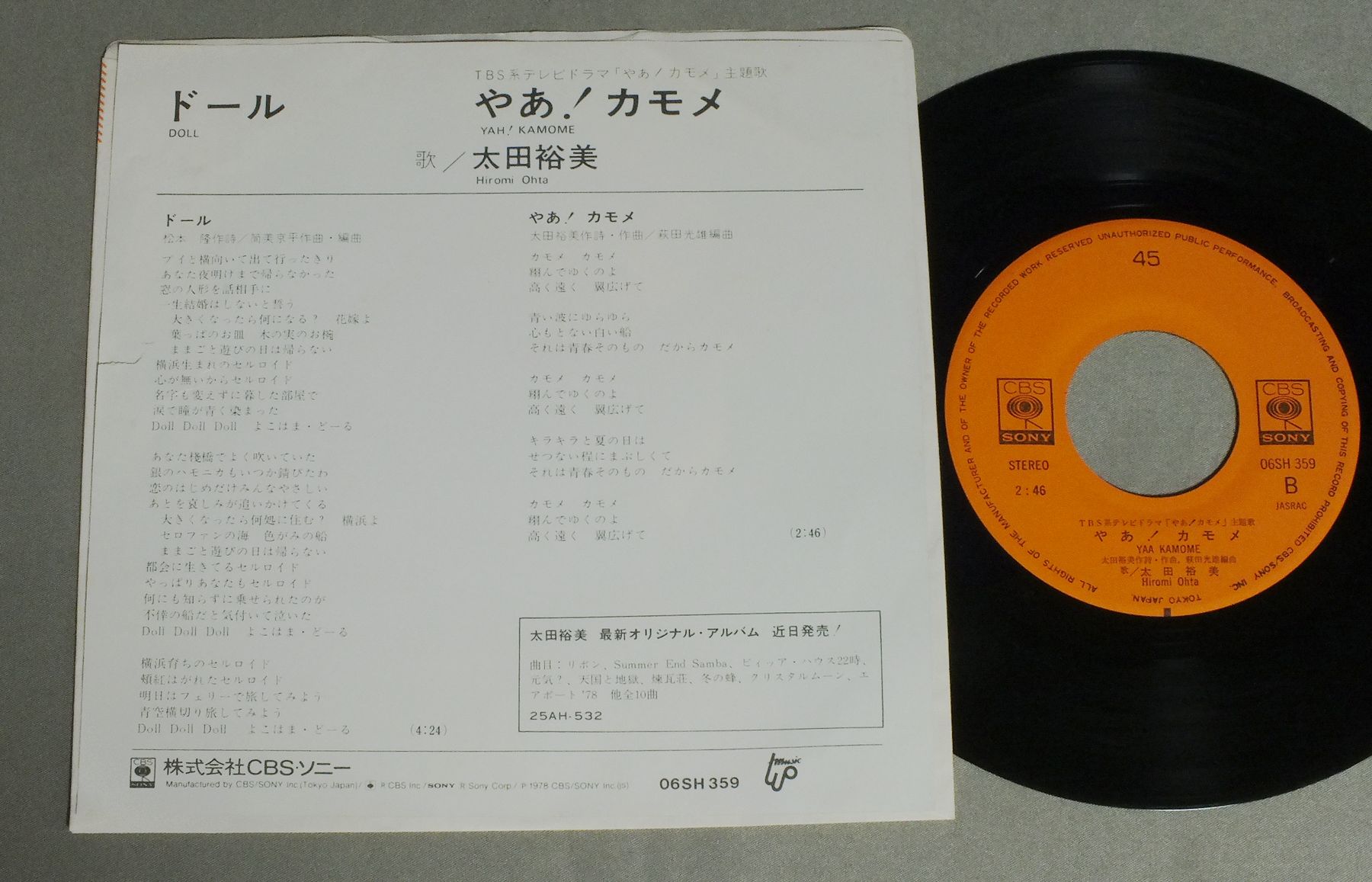 HIROMI OHTA太田裕美/DOLLドール 06SH359 製造国:日本盤 / Media:7inch外観:EX-盤の状態:EX- 価格(税込):¥440 送料 7inch:定形外郵便 360円~LP:定形外郵便 660円~送料は、注文の最終画面で確認頂けます。 > > HIROMI OHTA/DOLL 外観 (EX-)特記事項:右側に破れ。外観EX-の共通説明:ダメージ軽度~多少。 中古品としては普通の状態。シミ、ヨゴレ、スレなど軽く~多少。 盤の状態 (EX-)特記事項:薄いスリキズ・細かい表面スレ軽くある感じです。プチ出そうな所は少し。軽微なものが中心の様子です。盤EX-の共通説明:盤面のスリキズが多少有り。音に出そうなものは殆ど無いように見える~さほど気にならないぐらいの軽いプチ数カ所程度。 Tweet それぞれの画像をクリックすると、大きい写真が見られます こちらの商品もお勧めです 770円 CHIKA UEDA上田知華 / MISS HEARTミス・ハート 880円 YUKARI ITOH伊東ゆかり 布施 明 / DELUXE伊東ゆかりと布施 明-ふたりの愛の世界- 880円 NUMBER ONE BANDナンバーワン・バンド / TOKYO ATARI東京あたり 3,300円 TOTAL PRODUCE ORGANAIZER SIDAN師★団 / SUPER FLIGHT IN THE DARK超・夜間飛行 880円 TAKURO YOSHIDA吉田拓郎 / ROLLING 30 + FREE 7inchローリング30+おまけ7インチ 1,210円 SHOGO HAMADA浜田省吾 / GATE OF THE PROMISED LANDプロミスト・ランド -約束の地 1,650円 YUMI ARAI etc荒井由実他 / YUMING SUMMER SONG BOOKユーミン・サマー・ソング・ブック 880円 CHAGE & ASUKAチャゲ&飛鳥 / LIVE IN TOKYO 81LIVE IN 田園コロシアム THE 夏祭り `81