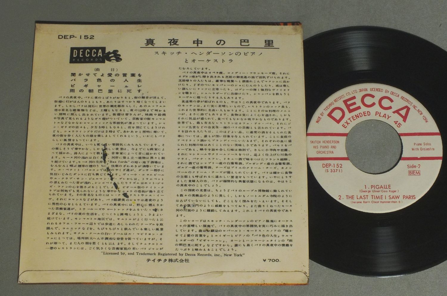 SKITCH HENDERSONスキッチ・ヘンダーソン/PARIS AT MIDNIGHT真夜中の巴里 DEP152 製造国:日本盤 / Media:7inch外観:EX-盤の状態:EX 価格(税込):¥770 送料 7inch:定形外郵便 360円~LP:定形外郵便 660円~送料は、注文の最終画面で確認頂けます。 レコード検索 > LED ZEPPELIN > SKITCH HENDERSON/PARIS AT MIDNIGHT 外観 (EX-)特記事項:リングスレや薄いシミ。外観EX-の共通説明:ダメージ軽度~多少。 中古品としては普通の状態。シミ、ヨゴレ、スレなど軽く~多少。 盤の状態 (EX)特記事項:薄いスリキズ・スレ少しある感じ。一見してきれいな感じです。盤EXの共通説明:盤面のスリキズが薄いものが少し~軽度 音に出そうなものは無いように見える(軽微なソフトティック音は除く)。 Tweet それぞれの画像をクリックすると、大きい写真が見られます こちらの商品もお勧めです 880円 TOMMY DORSEYトミ−・ド−シ− / DANCE & ROMANCE僕はセンチに−トミ−・ド−シ−・デラックス 990円 BENNY GOODMANベニー・グッドマン / BENNY GOODMAN ON V-DISCオン・Vディスク 1943-46 550円 BENNY GOODMANベニー・グッドマン / PLAYS JAZZ CLASSICS 770円 GLENN MILLERグレン・ミラー / OPERATION GLENN MILLERグレン・ミラー作戦 440円 BUCK CLAYTON CHARLIE SHAVERS etc / MORE LIVE ECHOES OF THE SWINGING BANDSスインギン・サウンド・スペシャル 第2集/ザ・ビッグ18 770円 VARIOUS ARTISTS / 22nd ALL JAPAN DIXIELAND JAZZ FESTIVAL第22回全日本ディキシーランド・ジャズ・フェスティバル 1,980円 BENNY GOODMANベニー・グッドマン / KING OF SWING BENNY GOODMAN VOL1 2LP BOX SETベニー・グッドマンの黄金時代 第1集 2枚組BOX 1,320円 TOMMY DORSEYトミー・ドーシー楽団他 / ORIGINAL TOMMY DORSEY BEST COLLECTIONオリジナル・トミー・ドーシー・ベスト・コレクション