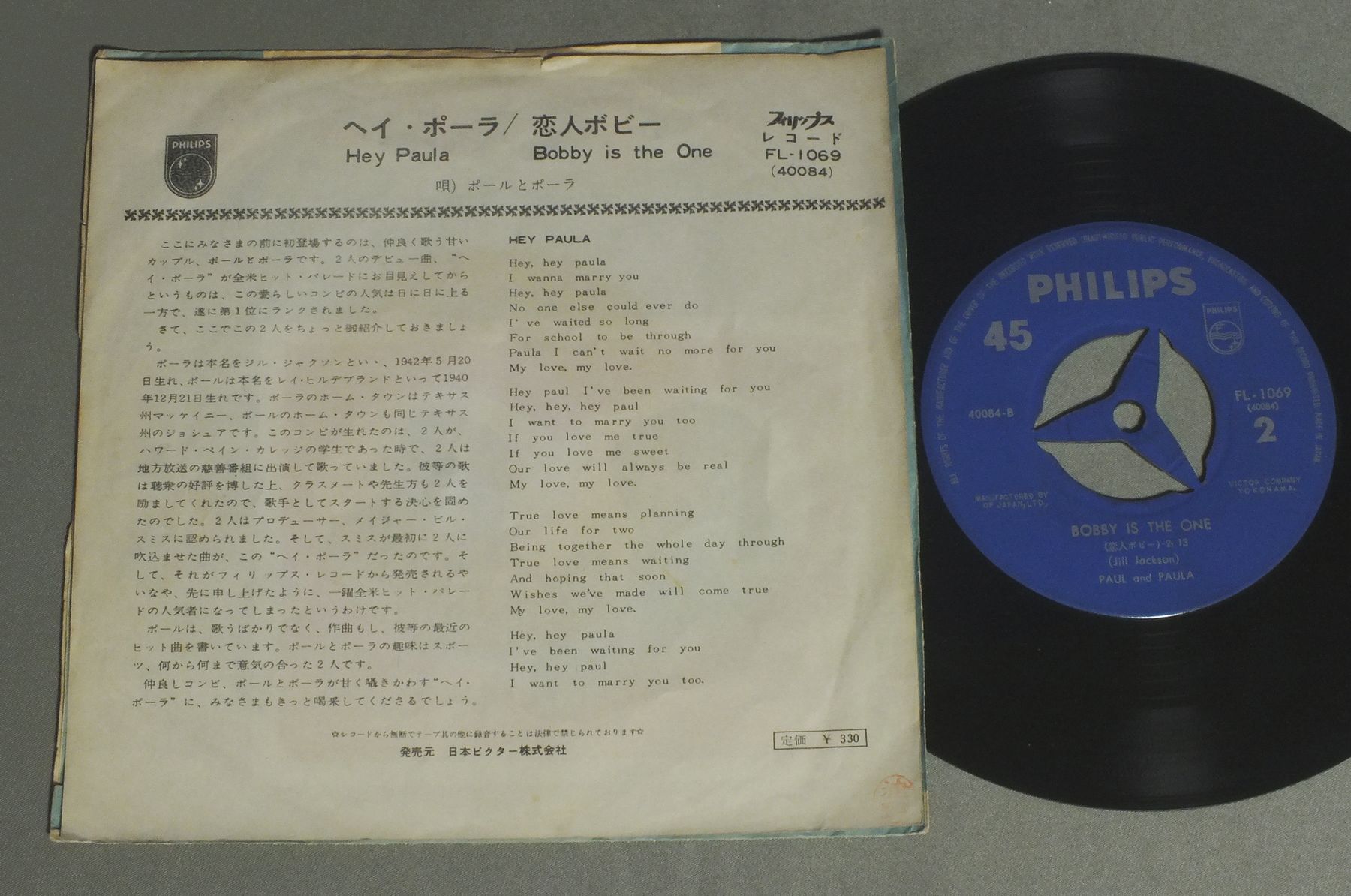 PAUL AND PAULAポールとポーラ/HEY PAULAヘイ・ポーラ FL1069 製造国:日本盤 / Media:7inch外観:EX-盤の状態:VG+ 価格(税込):¥330 送料 7inch:定形外郵便 360円~LP:定形外郵便 660円~送料は、注文の最終画面で確認頂けます。 レコード検索 > 1980s–90s > PAUL AND PAULA/HEY PAULA 外観 (EX-)特記事項:上部に破れ小。ヨレ多め。裏側にはんこ。外観EX-の共通説明:ダメージ軽度~多少。 中古品としては普通の状態。シミ、ヨゴレ、スレなど軽く~多少。 盤の状態 (VG+)特記事項:薄いスリキズ・細かいスレ多少。プチ出そうな小キズ、線キズも有ります。少し聴いてみましたが、音自体はしっかりクリアーに鳴っているようでした。盤VG+の共通説明:盤面にスリキズが多少~やや有り、音に出そうなものも多少ある。 Tweet それぞれの画像をクリックすると、大きい写真が見られます こちらの商品もお勧めです 990円 RICK NELSONリック・ネルソン / ALBUM SEVEN BY RICKアルバム・セブン・バイ・リック 770円 ELVIS PRESLEYエルヴィス・プレスリー / THAT`S THE WAY IT IS映画 エルヴィス・オン・ステージ 1,650円 ELVIS PLESLEYエルヴィス.プレスリー / ELVIS-THAT`S THE WAY IT ISエルヴィス.オン・ステージVOL.1 770円 WANDA JACKSONワンダ・ジャクスン / WANDA JACKSON COUNTRY !ワンダ・ジャクスン・カントリー 1,210円 VENTURES / BEST OF THE VENTURES vol.2 RED VINYL赤盤 990円 VENTURESベンチャーズ / IN CHRISTMASイン・クリスマス 2,420円 CLIFF RICHARDクリフ・リチャード / CLIFF IN JAPAN 1,210円 ELVIS PRESLEYエルヴィス・プレスリー / THAT`S THE WAY IT ISこの胸のときめきを