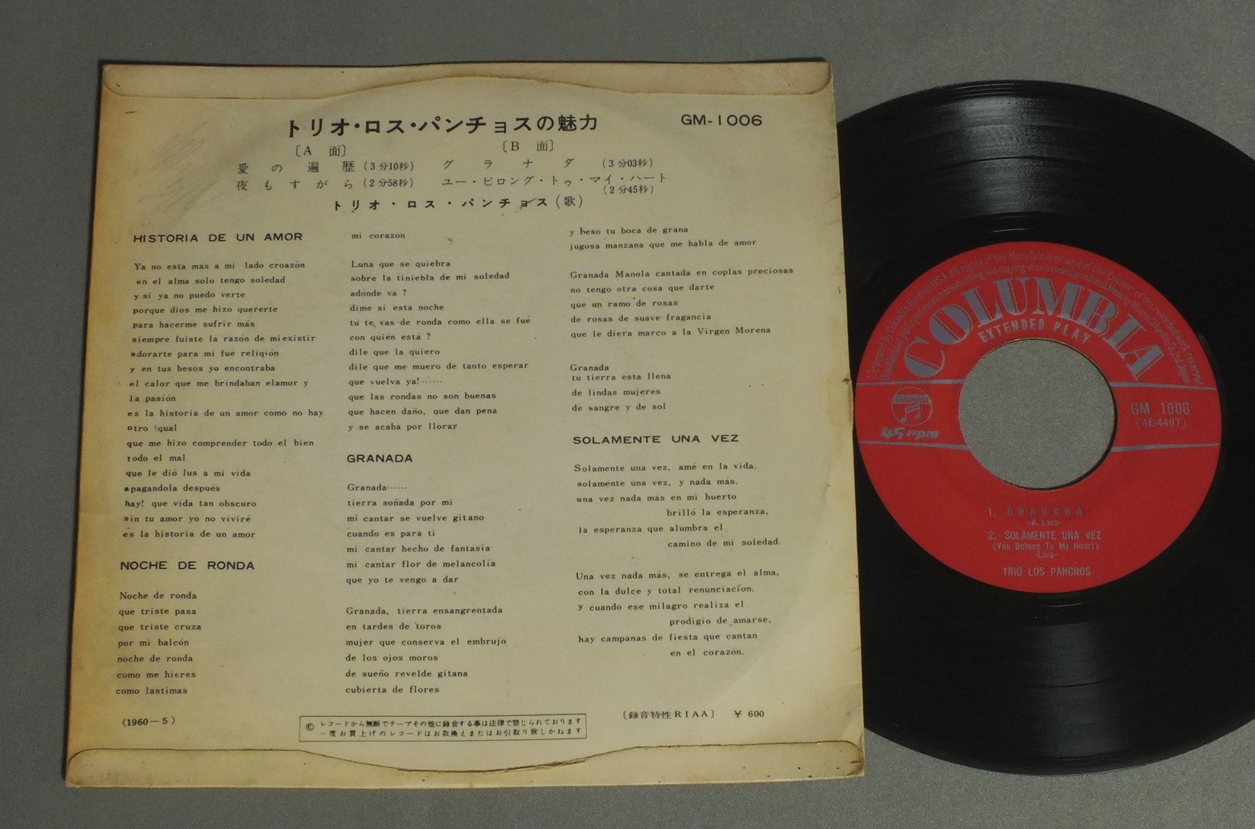 TRIO LOS PANCHOSトリオ・ロス・パンチョス/FASCINACION DEL TRIO LOS PANCHOSトリオ・ロス・パンチョスの魅力 GM1006 製造国:日本盤 / Media:7inch外観:VG+盤の状態:VG+ 価格(税込):¥330 送料 7inch:定形外郵便 360円~LP:定形外郵便 660円~送料は、注文の最終画面で確認頂けます。 レコード検索 > FEMALE > TRIO LOS PANCHOS/FASCINACION DEL TRIO LOS PANCHOS 外観 (VG+)特記事項:日焼感有り。背スレ。裏側に書込み。外観VG+の共通説明:ダメージやや有り。シミ、ヨゴレ、スレなど多少~やや多め。 盤の状態 (VG+)特記事項:薄いスリキズ・細かいスレやや多め。プチ出そうな小キズ、線キズは数カ所で、全体的には軽微なものが中心です。少し聴いてみましたが、音自体はしっかりクリアーに鳴っているようでした。盤VG+の共通説明:盤面にスリキズが多少~やや有り、音に出そうなものも多少ある。 Tweet それぞれの画像をクリックすると、大きい写真が見られます こちらの商品もお勧めです 770円 PETER PAUL&MARYピーター・ポール&マリー / LATE AGAINレイト・アゲイン 990円 BANJO BARONSバンジョー・バロンズ / IT`S A FOLK FOLK FOLK FOLK WORLDバンジョー. フォーク・ソングの世界 ペラジャケ 660円 JOAN BAEZジョーン・バエズ / JOAN自由の女神 1,320円 JOAN BAEZジョーン・バエズ / GULF WINDSガルフ・ウィンズ 990円 KITTY WELLSキティ・ウェルズ / DUST ON THE BIBLEダスト・オン・ザ・バイブル 990円 PETER PAUL & MARYピーター・ポール&マリー / IN CONCERT 770円 BROTHERS FOURブラザース・フォア / HONEY WIND BLOWSビッグ・フォーク・ヒッツ 第3集 770円 NITTY GRITTY DIRT BANDニッティー・グリッティー・ダート・バンド / STARS&STRIPES FOREVER星条旗よ永遠なれ!