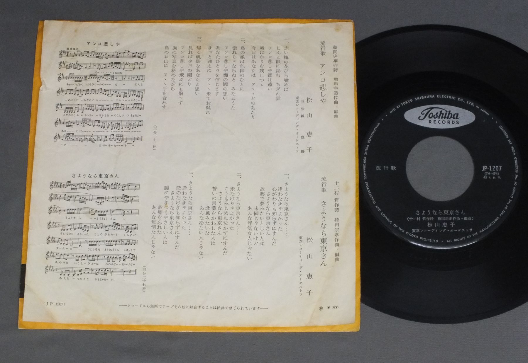 KEIKO MATSUYAMA松山恵子/ANKO KANASHIYAアンコ悲しや JP1207 製造国:日本盤 / Media:7inch外観:VG盤の状態:VG 価格(税込):¥550 送料 7inch:定形外郵便 360円~LP:定形外郵便 660円~送料は、注文の最終画面で確認頂けます。 レコード検索 > FEMALE > KEIKO MATSUYAMA/ANKO KANASHIYA 外観 (VG)特記事項:シミやよごれ、ヨレやキレなどあり。外観VGの共通説明:ダメージが見るからに多い。 盤の状態 (VG)特記事項:スリキズ、スレ多め。プチ出そうなものも多少有り。盤VGの共通説明:盤面にスリキズがやや有り、音に出そうなものも所々有る。 Tweet それぞれの画像をクリックすると、大きい写真が見られます こちらの商品もお勧めです 770円 MIEKO TAKAMINE高峰三枝子 / SONG ALBUM高峰三枝子 歌のアルバム 880円 KEN TSUMURA津村謙 / KAYO ALBUM津村謙歌謡アルバム 770円 三浦洸一 / ゴールデン・ヒット 1,210円 KEIICHIRO AKAGI赤木圭一郎 / EIEN-NO-TONY永遠のトニー 赤木圭一郎絶唱集 770円 MIDORI SASA笹みどり / BEST HITS下町育ち 笹みどりヒット集 880円 TOSHIRO OKAMOTO岡本敦朗 / SHIROI HANA NO SAKUKORO白い花の咲く頃 880円 YUKIO HASHI橋幸夫 / FROM ITAKOGASA TO MUHYO黄金の声/潮来笠から霧氷まで 880円 上原敏 / ポリドール(SP原盤)シリーズ -第6集- 哀愁の抒情・マドロス歌謡