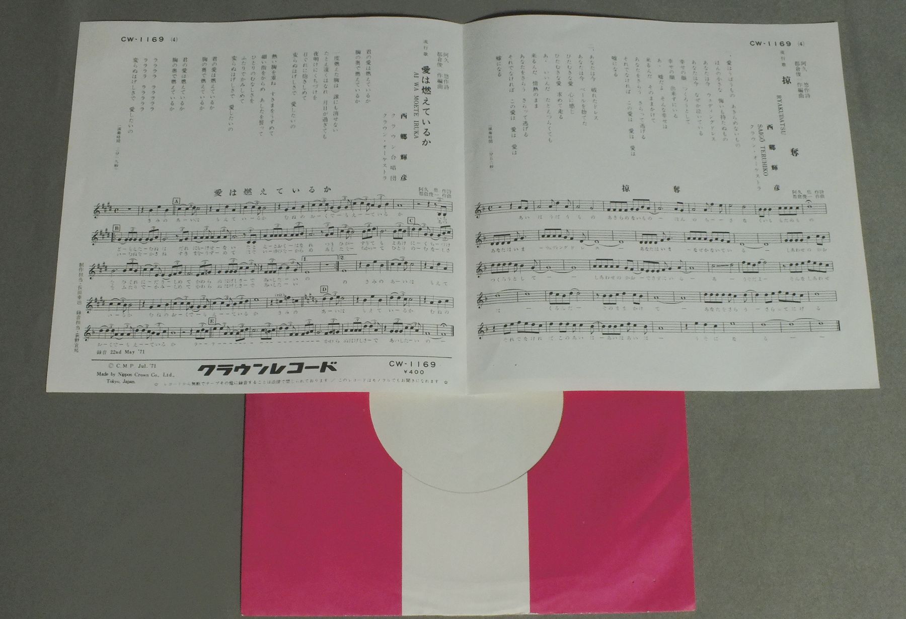 TERUHIKO SAIGO西郷輝彦/RYAKUDATSU掠奪 CW1169 製造国:日本盤 / Media:7inch外観:EX盤の状態:EX- 価格(税込):¥440 送料 7inch:定形外郵便 360円~LP:定形外郵便 660円~送料は、注文の最終画面で確認頂けます。 レコード検索 > 全てのジャンル > TERUHIKO SAIGO/RYAKUDATSU 外観 (EX)特記事項:右下にホチキス跡。ヨレが少し。外観EXの共通説明:ダメージが限定的。中古品としては保存状態がよい方。シミ、ヨゴレ、スレ 少し~軽度。 盤の状態 (EX-)特記事項:薄いスリキズ・細かい表面スレ多少ある感じ。殆どが軽微なものの様子です。盤EX-の共通説明:盤面のスリキズが多少有り。音に出そうなものは殆ど無いように見える~さほど気にならないぐらいの軽いプチ数カ所程度。 Tweet それぞれの画像をクリックすると、大きい写真が見られます こちらの商品もお勧めです 1,210円 YUMI MATSUTOYA松任谷由実 / DA-DI-DAダ・ディ・ダ 660円 GARO / GARO 4 1,320円 JUN & NENEじゅん&ネネ / WORLD OF JUN & NENE愛するってこわい -じゅん&ネネの世界- 1,650円 TAKAYUKI INOUE井上堯之 / WATER BAND WAGON 1,320円 ALFEEアルフィー / FOR YOUR LOVE 880円 TULIPチューリップ / LIVE ACT TULIPライヴ アクト・チューリップ 1,210円 USHIROYUBI SASAREGUMIうしろゆびさされ組 / BALANCING TOY 990円 YOSHIMI IWASAKI岩崎良美 / KOKORO NO ATELIER心のアトリエ