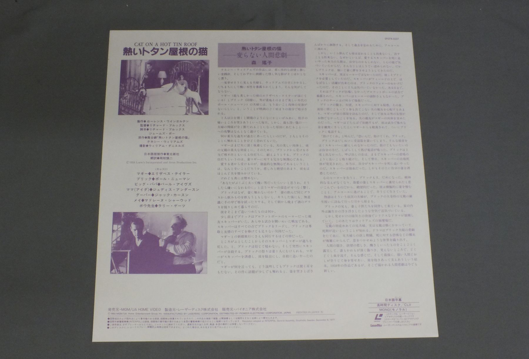 RICHARD BROOKSリチャード・ブルックス/CAT ON A HOT TIN ROOF映画熱いトタン屋根の猫 SF078 5037 製造国:日本盤 / Media:LD外観:EX盤の状態:EX 価格(税込):¥550 送料 7inch:定形外郵便 360円~LP:定形外郵便 660円~送料は、注文の最終画面で確認頂けます。 レコード検索 > J-POP > RICHARD BROOKS/CAT ON A HOT TIN ROOF 外観 (EX)特記事項:ジャケ表面にシミ有り外観EXの共通説明:ダメージが限定的。中古品としては保存状態がよい方。シミ、ヨゴレ、スレ 少し~軽度。 盤の状態 (EX)特記事項:薄いスリキズ・スレ軽くある感じ。軽微なものの様子です。盤EXの共通説明:盤面のスリキズが薄いものが少し~軽度 音に出そうなものは無いように見える(軽微なソフトティック音は除く)。 Tweet それぞれの画像をクリックすると、大きい写真が見られます こちらの商品もお勧めです 1,980円 OSAMU TEDUKA手塚治虫 / ORIGINAL SOUNDTRACK PHOENIX 2772オリジナルサウンドトラック 火の鳥2772 音楽集