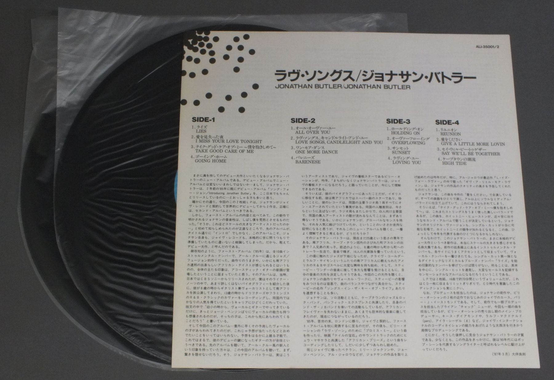 JONATHAN BUTLERジョナサン・バトラー/JONATHAN BUTLERラヴ・ソングス ALI35001/2 製造国:日本盤 / Media:LP外観:EX盤の状態:EX+ 価格(税込):¥550(売約済) 送料 7inch:定形外郵便 360円~LP:定形外郵便 660円~送料は、注文の最終画面で確認頂けます。 > > JONATHAN BUTLER/JONATHAN BUTLER 外観 (EX)特記事項:見開きにシミ、周辺部に日焼け。外観EXの共通説明:ダメージが限定的。中古品としては保存状態がよい方。シミ、ヨゴレ、スレ 少し~軽度。 盤の状態 (EX+)特記事項:薄いスリキズ・スレ少し。一見してきれいな状態です。盤EX+の共通説明:盤面の極薄いスリキズ、スレ少し程度 音に出そうなものは無いように見える(極軽微なソフトティック音は除く)。 Tweet それぞれの画像をクリックすると、大きい写真が見られます こちらの商品もお勧めです 770円 YELLOW JACKETSイエロージャケッツ / SHADESシェイズ 770円 SHAKATAKシャカタク / INVITATIONSインヴィテーション 1,650円 SKY4スカイ4 / FORTHCOMINGスカイ4 990円 YOSHIAKI MASUO増尾義秋 / SUNSHINE AVENUEサンシャイン・アヴェニュー 990円 BOB JAMESボブ・ジェームス / RAMEAUラモー 880円 MEZZOFORTEメゾフォルテ / SURPRISE SURPRISEガーデン・パーティ 440円 TIM WEISBERGティム・ワイズバーグ / HIGH RISKハイ・リスク 8,800円 JUN FUKAMACHI深町純 / `86 SPRING & SUMMER COLLECTIONニコル '86 スプリング・アンド・サマー・コレクション