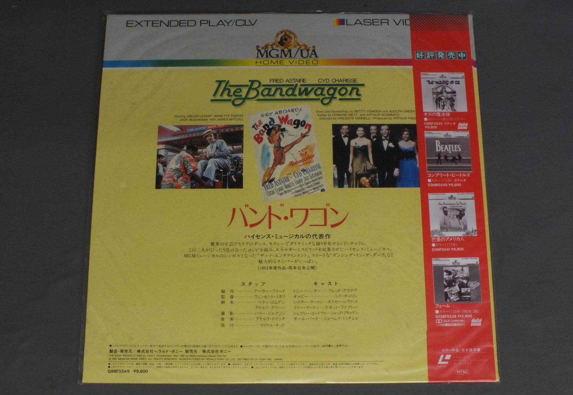 VINCENTE MINNELLIヴィンセント・ミネリ/BAND WAGON映画バンド・ワゴン G98F5549 製造国:日本盤 / Media:LD外観:EX-盤の状態:M帯:EX+ 価格(税込):¥550 送料 7inch:定形外郵便 360円~LP:定形外郵便 660円~送料は、注文の最終画面で確認頂けます。 > > VINCENTE MINNELLI/BAND WAGON 外観 (EX-)特記事項:未開封ですが、ジャケ表面にシミ有り。外観EX-の共通説明:ダメージ軽度~多少。 中古品としては普通の状態。シミ、ヨゴレ、スレなど軽く~多少。 盤の状態 (M)特記事項:未開封盤Mの共通説明:新品。 帯の状態 (EX+):特記なし。 Tweet それぞれの画像をクリックすると、大きい写真が見られます こちらの商品もお勧めです
