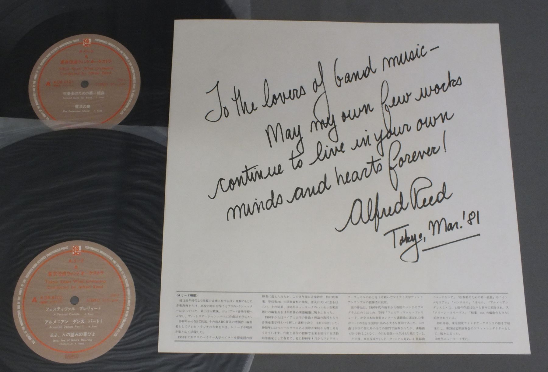ALFRED READアルフレッド・リード/SECOND SUITE FOR BAND吹奏楽のための第2組曲 KOR8101-02 製造国:日本盤 / Media:LP外観:EX盤の状態:EX帯:EX+ 価格(税込):¥1,320(売約済) 送料 7inch:定形外郵便 360円~LP:定形外郵便 660円~送料は、注文の最終画面で確認頂けます。 > > ALFRED READ/SECOND SUITE FOR BAND 外観 (EX)特記事項:特記なし。外観EXの共通説明:ダメージが限定的。中古品としては保存状態がよい方。シミ、ヨゴレ、スレ 少し~軽度。 盤の状態 (EX)特記事項:特記なし。盤EXの共通説明:盤面のスリキズが薄いものが少し~軽度 音に出そうなものは無いように見える(軽微なソフトティック音は除く)。 帯の状態 (EX+):特記なし。 その他:見本盤 Tweet それぞれの画像をクリックすると、大きい写真が見られます こちらの商品もお勧めです 990円 TOMOJIRO IKENOUCH池内友次郎 / TROIS PIECES TIREES DE NOH DRAME`YUYA`POUR SOPRANO ET ORCHESTREソプラノと管弦楽のための三つの小品謡曲`熊野(ゆや)` 990円 KAZUO YAMADA & NHK SYMPHONY ORCHESTRA山田一雄 N響 / GRAND KAGURA FOR WIND ORCHESTRA吹奏楽のための太神楽 770円 REIMOND RICHARDレイモン・リシャール / MARSEILLAISEマルセイエーズ 770円 JAPAN SELF-DEFENSE FORCES MARCHING BAND自衛隊音楽隊 / THIS IS MARCHこれぞマーチ決定版 990円 ROBERT SHAWロバート・ショウ / OPERATIC CHORUSESロバート・ショウ-合唱曲集 1,320円 PHILIP JONES BRASS ENSEMBLEフィリップ・ジョーンズ・ブラス・アンサンブル / FESTIVE BRASS超絶! ブラスの祭典 990円 IKUKO TAKEUCHI竹内郁子 / MANDOLIN ENSEMBLE ORIGINAL ALBUMマンドリン・アンサンブル・オリジナル名曲集 990円 LARRY ADLERラリー・アドラー / HARMONICA WITH ORCH.超絶のハーモニカ 恋のアランフェス