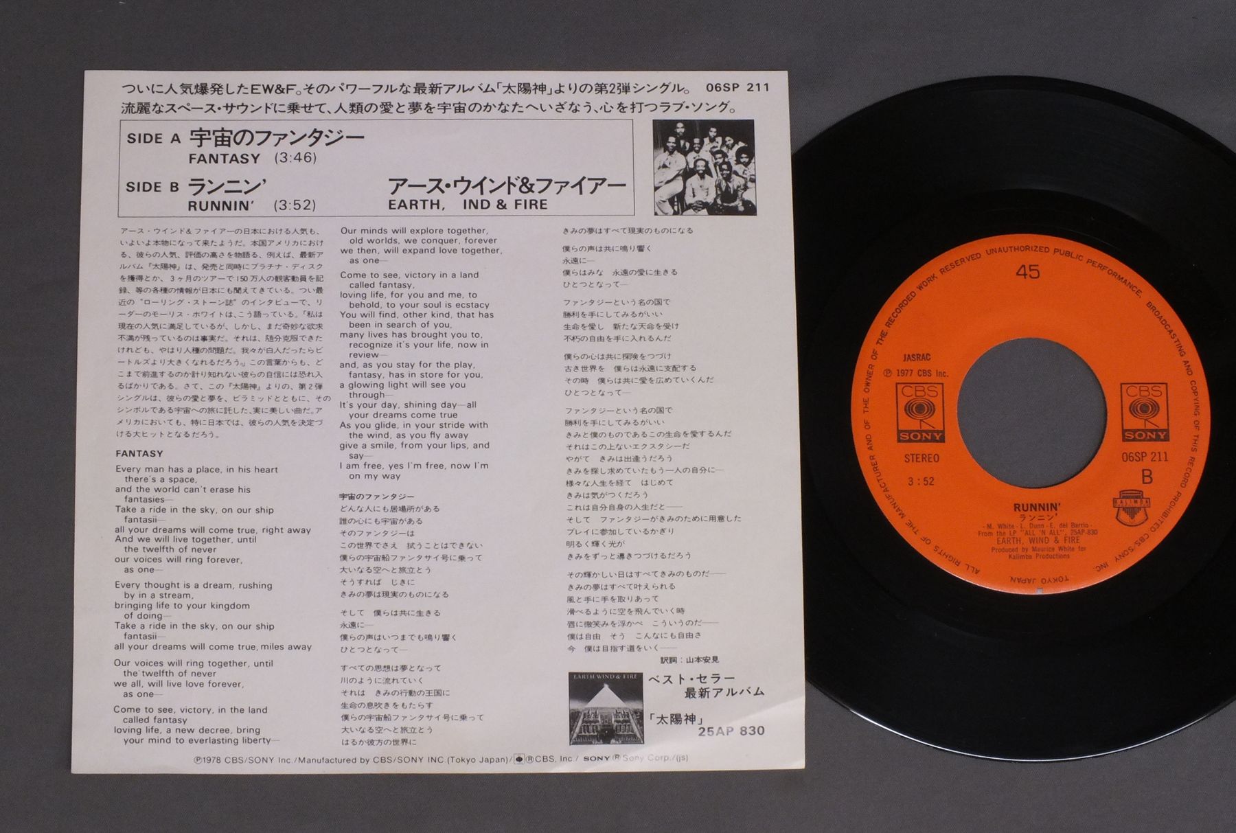 EARTH. WIND & FIREアース・ウインド&ファイアー/FANTASY宇宙のファンタジー 06SP211 製造国:日本盤 / Media:7inch外観:EX盤の状態:EX+ 価格(税込):¥660 送料 7inch:定形外郵便 360円~LP:定形外郵便 660円~送料は、注文の最終画面で確認頂けます。 レコード検索 > FEMALE > EARTH. WIND & FIRE/FANTASY 外観 (EX)特記事項:軽いヨレ有り外観EXの共通説明:ダメージが限定的。中古品としては保存状態がよい方。シミ、ヨゴレ、スレ 少し~軽度。 盤の状態 (EX+)特記事項:薄いスリキズ・スレ少し。一見してきれいな状態です。盤EX+の共通説明:盤面の極薄いスリキズ、スレ少し程度 音に出そうなものは無いように見える(極軽微なソフトティック音は除く)。 Tweet それぞれの画像をクリックすると、大きい写真が見られます こちらの商品もお勧めです 770円 DIANA ROSSダイアナ・ロス / WHY DO FOOLS FALL IN LOVEファースト・レディ 1,210円 TEMPTATIONSテンプテーションズ / SURFACE THRILLSサーフィス・スリル 770円 KOOL & THE GANGクール・アンド・ギャング / LADIES` NIGHTレディーズ・ナイト 990円 ASHFORD & SIMPSONアシュフォード&シンプソン / HIGH-RISEハイ・ライズ 770円 MARTHA REEVESマーサ・リーブス / 1st ALBUMソロ・ファースト 440円 THREE DEGREESスリー・ディグリーズ / INTERNATIONAL世界の恋人スリー・ディグリーズ 770円 WRITERS / WRITERSニュー・リズム・マシーン登場 1,210円 TEMPTATIONSテンプテーションズ / BACK TO BASICSバック・トゥー・ベイシックス