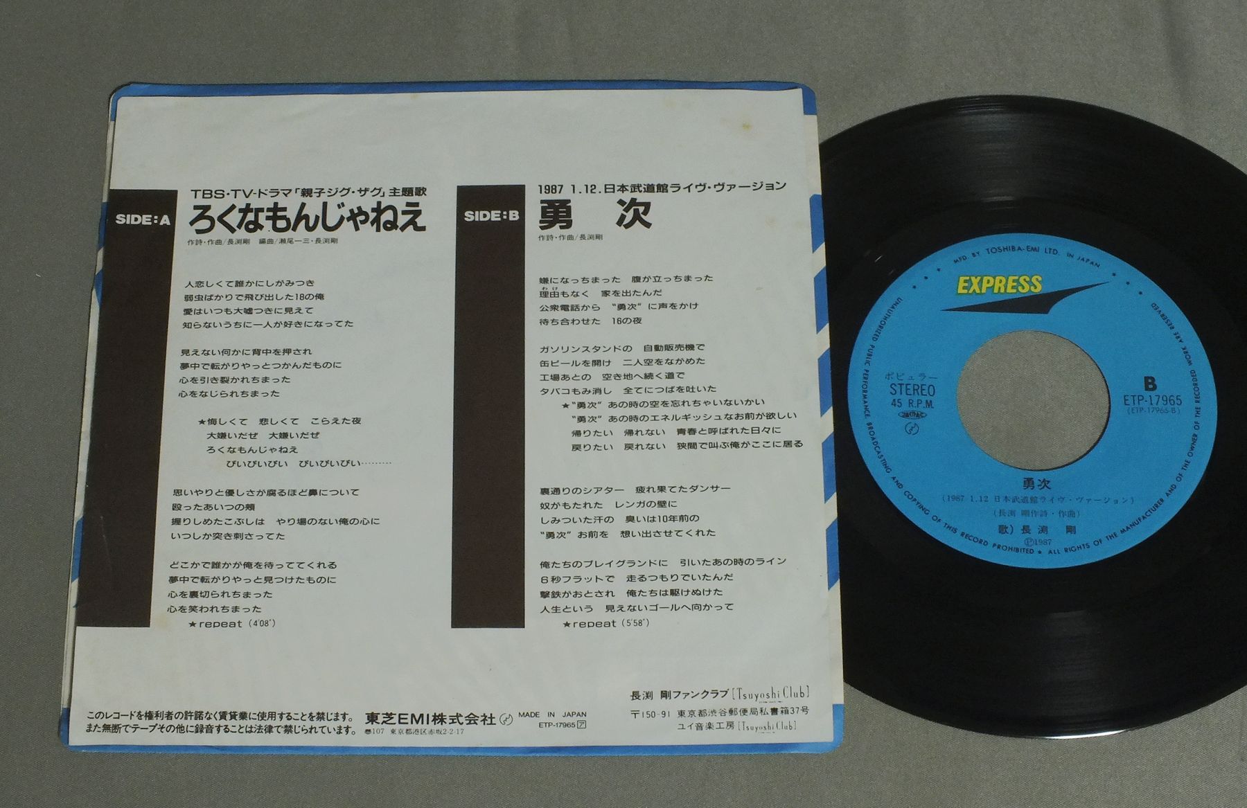 GO NAGABUCHI長渕剛/ROKUNAMONJAYNAIろくなもんじゃねえ ETP17965 製造国:日本盤 / Media:7inch外観:EX-盤の状態:EX 価格(税込):¥550 送料 7inch:定形外郵便 360円~LP:定形外郵便 660円~送料は、注文の最終画面で確認頂けます。 レコード検索 > CLASSIC ETC > GO NAGABUCHI/ROKUNAMONJAYNAI 外観 (EX-)特記事項:ヨレや薄いシミ有り。外観EX-の共通説明:ダメージ軽度~多少。 中古品としては普通の状態。シミ、ヨゴレ、スレなど軽く~多少。 盤の状態 (EX)特記事項:長めのスレキズがありますが、音には影響ない感じの薄いスレです。盤EXの共通説明:盤面のスリキズが薄いものが少し~軽度 音に出そうなものは無いように見える(軽微なソフトティック音は除く)。 Tweet それぞれの画像をクリックすると、大きい写真が見られます こちらの商品もお勧めです 770円 MIYUKI NAKAJIMA中島みゆき / OAKERINASAIおかえりなさい 990円 MARI AMACHI天地真理 / YOU&I小さな恋-ひとりじゃないの (あなたと私) 990円 RYOKO MORIYAMA森山良子 / RYOKO NOW旅立ち-森山良子-1972 770円 TAKURO YOSHIDA吉田拓郎 / ONLY YOUオンリー・ユー 770円 KAZUHIKO KATOH加藤和彦 / L`OPERA FRAGILE 770円 CHAGE & ASUKAチャゲ&飛鳥 / 熱風 990円 TULIP - YUMI MATSUTOYA etcチューリップ - ユーミン他 / PROMO ONLY店頭演奏総合試聴盤 770円 HIRO TSUNODA & JAP`S GAP`Sつのだ・ひろ&ジャップス・ギャップス / 1st ALBUMジャップス・ギャップス・テーマ