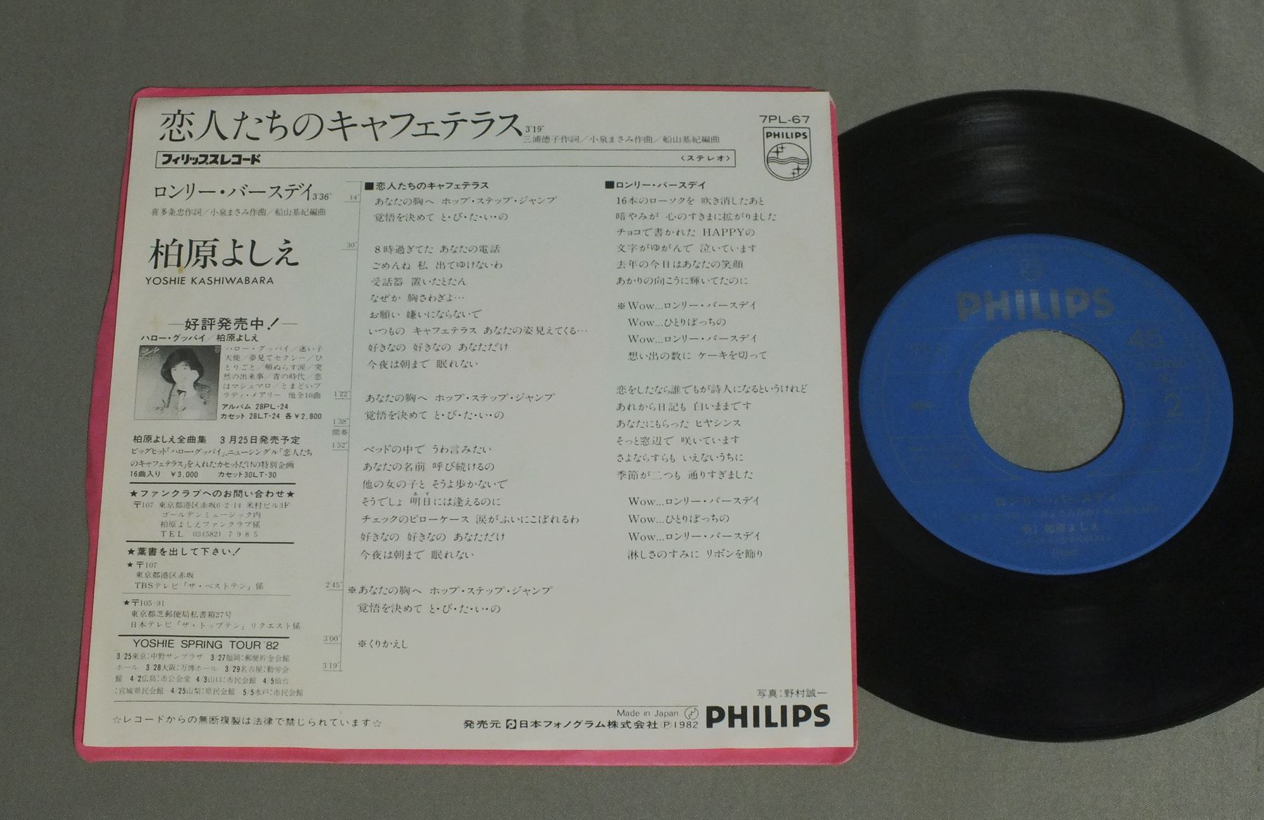 YOSHIE KASHIWABARA柏原よしえ/KOIBITOTACHI NO CAFETERASU恋人たちのキャフェテラス 7PL67 製造国:日本盤 / Media:7inch外観:EX+盤の状態:EX+ 価格(税込):¥825 送料 7inch:定形外郵便 360円~LP:定形外郵便 660円~送料は、注文の最終画面で確認頂けます。 レコード検索 > CLASSIC CHAMBER > YOSHIE KASHIWABARA/KOIBITOTACHI NO CAFETERASU 外観 (EX+)特記事項:特記なし。外観EX+の共通説明:中古としては美品、一見してきれいでダメージが軽微。シミ、ヨゴレ、スレ有っても僅か~少し。 盤の状態 (EX+)特記事項:薄いスリキズ・スレ少し。一見してきれいな状態です。盤EX+の共通説明:盤面の極薄いスリキズ、スレ少し程度 音に出そうなものは無いように見える(極軽微なソフトティック音は除く)。 Tweet それぞれの画像をクリックすると、大きい写真が見られます こちらの商品もお勧めです 880円 YUMI MORIO森尾 由美 / YOU & ME 1,210円 SAYURI KOKUSHO国生さゆり / TRANSIT 770円 SHOKO SAWADA沢田聖子 / KAZEN NO YOKAN風の予感 990円 PINK LADYピンク・レディー / CHALLENGE CONCERTチャレンジ・コンサート 990円 YOSHIMI IWASAKI岩崎良美 / SAISONS (2nd ALBUM)セゾン(2nd ALBUM) 1,210円 ERI NITTA新田恵利 / ERI 990円 SONOKO KAWAI河合その子 / SIESTAシエスタ 770円 CHIEMI KAI甲斐智枝美 / WINK ( 1st ALBUM )ウインク