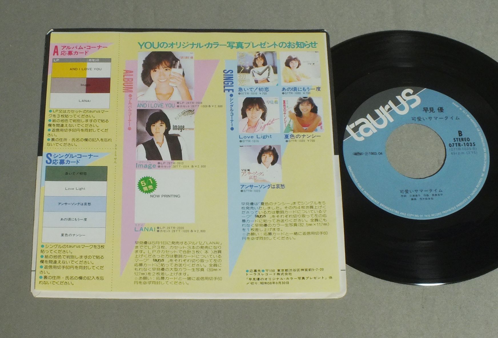 YOU HAYAMI早見優/NATSUIRO NO NANCY夏色のナンシー 07TR1035 製造国:日本盤 / Media:7inch外観:EX+盤の状態:EX+ 価格(税込):¥825 送料 7inch:定形外郵便 360円~LP:定形外郵便 660円~送料は、注文の最終画面で確認頂けます。 レコード検索 > CLASSIC CHAMBER > YOU HAYAMI/NATSUIRO NO NANCY 外観 (EX+)特記事項:特記なし。外観EX+の共通説明:中古としては美品、一見してきれいでダメージが軽微。シミ、ヨゴレ、スレ有っても僅か~少し。 盤の状態 (EX+)特記事項:薄いスリキズ・スレ少し。一見してきれいな状態です。盤EX+の共通説明:盤面の極薄いスリキズ、スレ少し程度 音に出そうなものは無いように見える(極軽微なソフトティック音は除く)。 Tweet それぞれの画像をクリックすると、大きい写真が見られます こちらの商品もお勧めです 770円 SHOKO SAWADA沢田聖子 / POTENTIALポテンシャル 770円 MIKI ASAKURA麻倉未希 / DANCIN` M. 1,210円 SAYURI KOKUSHO国生さゆり / TRANSIT 1,210円 MOMOE YAMAGUCH山口百恵 / MOBIUS`S GAMEメビウス・ゲーム 770円 SEIKO MATSUDA松田聖子 / SEIKO TOWN 1,210円 SONOKO KAWAI河合その子 / MODE DE SONOKO 770円 NAOKO KAWAI河合奈保子 / NAOKO IN CONCERT河合奈保子 カナリー・コンサート PART 2 1,210円 AKINA NAKAMORI中森明菜 / FANTASYファンタジー`幻想曲`