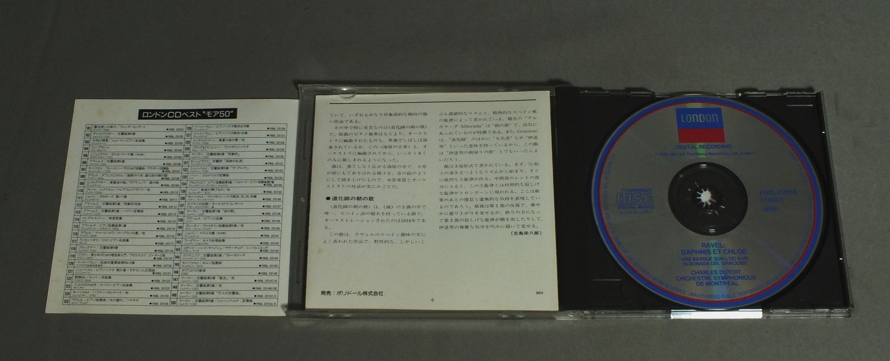DUTOITデュトワ/RAVEL/DAPHNIS ET CHLOE COMPLETE BALLETラヴェル/バレエ音楽ダフニスとクロエ全曲 F00L23108 製造国:日本盤 / Media:CD外観:EX盤の状態:EX+ 価格(税込):¥1,320 送料 7inch:定形外郵便 360円~LP:定形外郵便 660円~送料は、注文の最終画面で確認頂けます。 レコード検索 > QUEEN > DUTOIT/RAVEL/DAPHNIS ET CHLOE COMPLETE BALLET 外観 (EX)特記事項:カードは、ヨレ・スレ・シミなど小 - 軽度です。外観EXの共通説明:ダメージが限定的。中古品としては保存状態がよい方。シミ、ヨゴレ、スレ 少し~軽度。 盤の状態 (EX+)特記事項:微細なスリキズが少々。きれいな感じの盤面です。盤EX+の共通説明:盤面の極薄いスリキズ、スレ少し程度 音に出そうなものは無いように見える(極軽微なソフトティック音は除く)。 Tweet それぞれの画像をクリックすると、大きい写真が見られます こちらの商品もお勧めです 990円 BEAUX ARTS TRIOボザール・トリオ / BEETHOVEN - PIANO TRIO NO.7ベートーヴェン - ピアノ三重奏曲第7番 1,320円 ACHENBACH - DAS HEIDELBERGER KAMMERORCHESTERアッヘンバッハ - ハイデルベルグ室内管弦楽団 / BACH - MESSE IN H-MOLLバッハ - ロ短調ミサ曲
