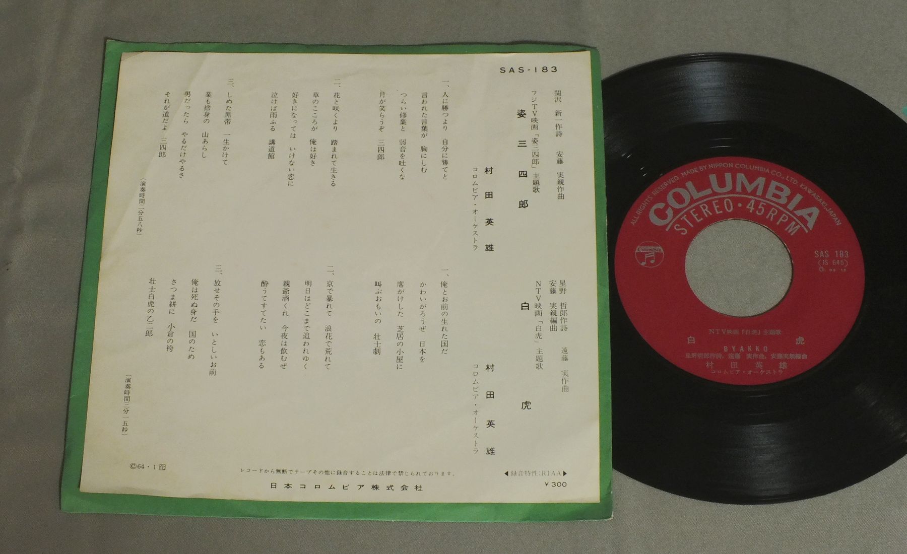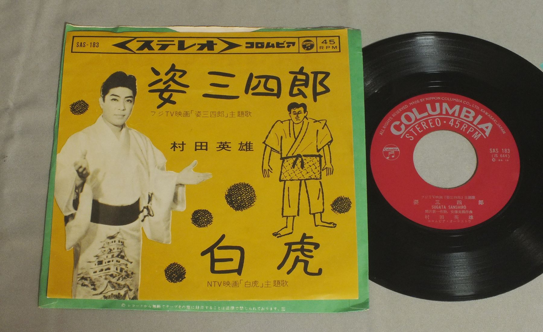 HIDEO MURATA村田英雄/SUGATA SANSHIRO姿三四郎 SAS183 製造国:日本盤 / Media:7inch外観:EX盤の状態:EX- 価格(税込):¥440 送料 7inch:定形外郵便 360円~LP:定形外郵便 660円~送料は、注文の最終画面で確認頂けます。 レコード検索 > FUSION > HIDEO MURATA/SUGATA SANSHIRO 外観 (EX)特記事項:ヨレやリングスレが少し。外観EXの共通説明:ダメージが限定的。中古品としては保存状態がよい方。シミ、ヨゴレ、スレ 少し~軽度。 盤の状態 (EX-)特記事項:薄いスリキズ・細かい表面スレ軽くある感じ。全体的には殆どが軽微なものの様子です。盤EX-の共通説明:盤面のスリキズが多少有り。音に出そうなものは殆ど無いように見える~さほど気にならないぐらいの軽いプチ数カ所程度。 Tweet それぞれの画像をクリックすると、大きい写真が見られます こちらの商品もお勧めです 880円 YUKIO HASHI橋幸夫 / FROM ITAKOGASA TO MUHYO黄金の声/潮来笠から霧氷まで 1,210円 HACHIRO KASUGA春日八郎 / HACHIRO KASUGA HIT ALBUM春日八郎 -魅力のすべて- 660円 MISAO MATSUBARA松原操 / COLLECTION VOL2第ニ集-浮草の唄 770円 MIEKO TAKAMINE高峰三枝子 / SONG ALBUM高峰三枝子 歌のアルバム 880円 TOSHIRO OKAMOTO岡本敦朗 / SHIROI HANA NO SAKUKORO白い花の咲く頃 770円 三浦洸一 / ゴールデン・ヒット 770円 MIDORI SASA笹みどり / BEST HITS下町育ち 笹みどりヒット集 880円 上原敏 / ポリドール(SP原盤)シリーズ -第6集- 哀愁の抒情・マドロス歌謡