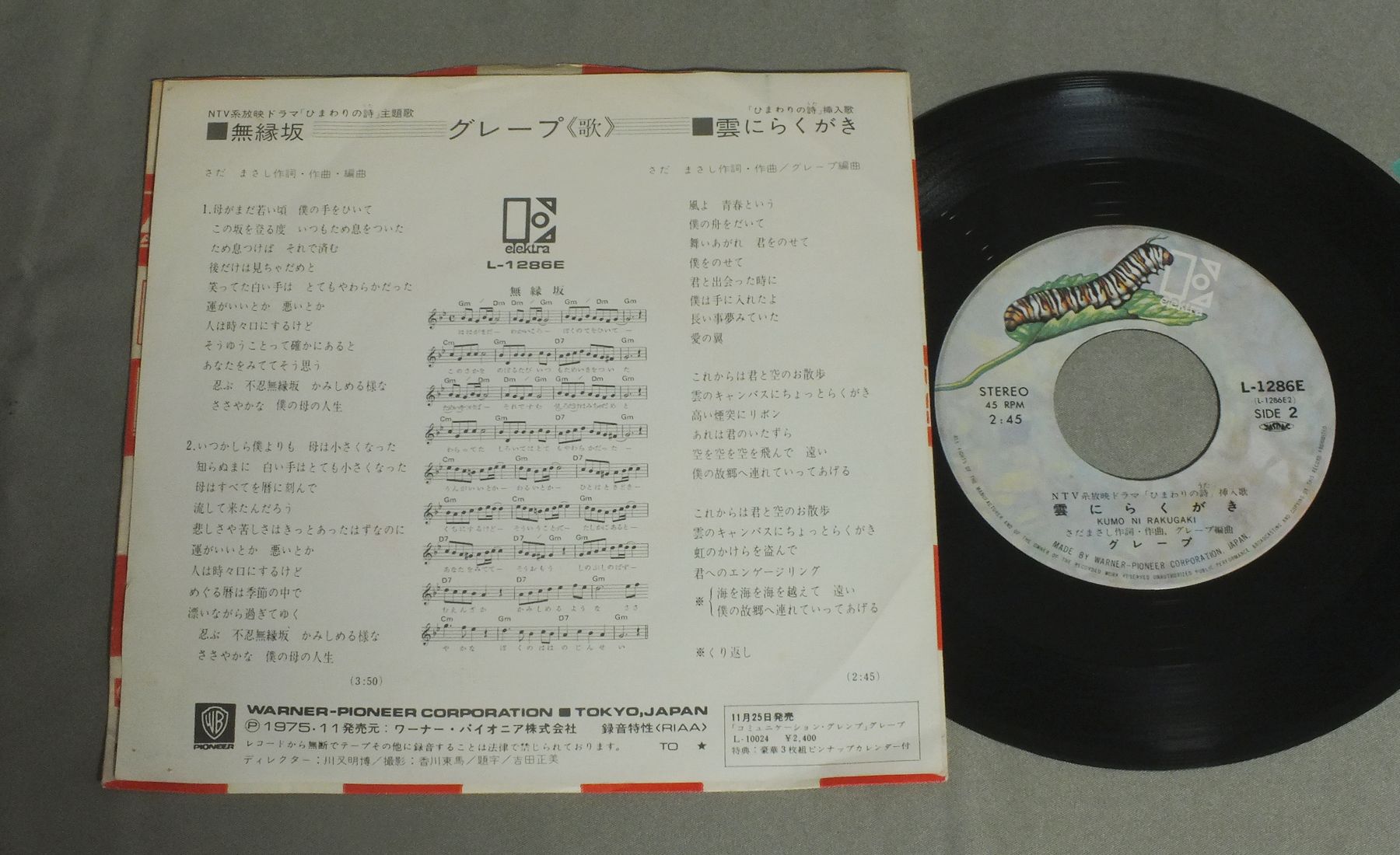 GLAPEグレープ/MUENZAKATVひまわりの詩 主題歌 無縁坂 L1286E 製造国:日本盤 / Media:7inch外観:EX盤の状態:EX+ 価格(税込):¥660 送料 7inch:定形外郵便 360円~LP:定形外郵便 660円~送料は、注文の最終画面で確認頂けます。 レコード検索 > CLASSIC ETC > GLAPE/MUENZAKA 外観 (EX)特記事項:右下にホチキス跡。ヨレが少し。外観EXの共通説明:ダメージが限定的。中古品としては保存状態がよい方。シミ、ヨゴレ、スレ 少し~軽度。 盤の状態 (EX+)特記事項:薄いスリキズ・スレ少し。一見してきれいな状態です。盤EX+の共通説明:盤面の極薄いスリキズ、スレ少し程度 音に出そうなものは無いように見える(極軽微なソフトティック音は除く)。 Tweet それぞれの画像をクリックすると、大きい写真が見られます こちらの商品もお勧めです 1,320円 NANA KINOMI木の実ナナ / BEST OF NANAベスト・オブ・ナナ-うぬぼれワルツ 770円 EIKICHI YAZAWA矢沢永吉 / P M 9 770円 KAZUO ZAITSU財津和夫 / ROUND ABOUT WAY (SOLO CONCERT LIVE)ソロ・コンサート・ライヴ 770円 KUMIKO YAMASHITA山下久美子 / DANCIN`IN THE KITCHEN 990円 MIZUKI OHURA大浦みずき / NIGHT & DAYナイト&デイ 1,210円 HIROKUNI KOREKATA是方博邦 / MELODY CITYメロディ・シティ 770円 YASUKO NAITOH内藤やす子 / NAINAI ZUKUSHIないないづくし 880円 YUMI MATSUTOYA松任谷由実 / REINCARNATIONリ・インカーネイション