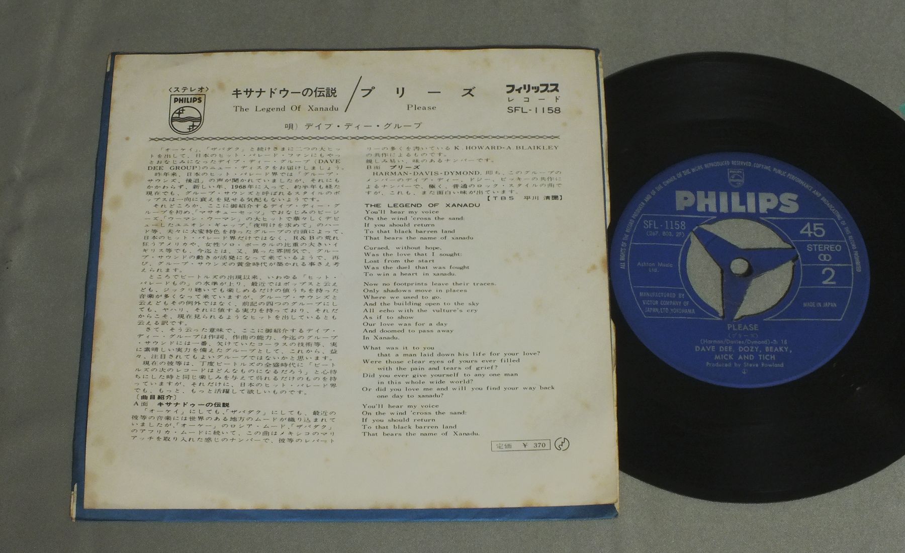 DAVE DEE GROUPデイブ・ディー・グループ/LEGEND OF XANADUキサナドゥーの伝説 SFL1158 製造国:日本盤 / Media:7inch外観:EX-盤の状態:EX 価格(税込):¥550 送料 7inch:定形外郵便 360円~LP:定形外郵便 660円~送料は、注文の最終画面で確認頂けます。 レコード検索 > GS > DAVE DEE GROUP/LEGEND OF XANADU 外観 (EX-)特記事項:ヨレやシミ有り。外観EX-の共通説明:ダメージ軽度~多少。 中古品としては普通の状態。シミ、ヨゴレ、スレなど軽く~多少。 盤の状態 (EX)特記事項:薄いスリキズ・スレ軽くある感じ。殆どが軽微なものの様子です。盤EXの共通説明:盤面のスリキズが薄いものが少し~軽度 音に出そうなものは無いように見える(軽微なソフトティック音は除く)。 Tweet それぞれの画像をクリックすると、大きい写真が見られます こちらの商品もお勧めです 2,640円 SPOTNICKSスプートニクス / KARELIA-THE BEST OF THE SPOTNICKS霧のカレリア-ベスト・オブ・ザ・スプートニクス 4,950円 ANIMALSアニマルズ / BEST ALBUM アニマルズのすべて 赤盤