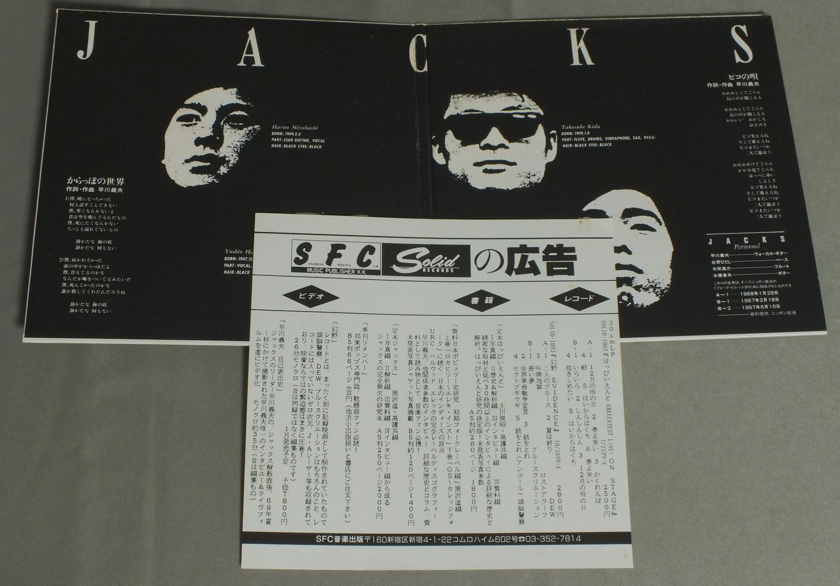 JACKS/KARAPPO NO SEKAIからっぽの世界/ピコの唄 SOLID1 製造国:日本盤 / Media:7inch外観:EX-盤の状態:EX+ 価格(税込):¥770 送料 7inch:定形外郵便 360円~LP:定形外郵便 660円~送料は、注文の最終画面で確認頂けます。 > > JACKS/KARAPPO NO SEKAI 外観 (EX-)特記事項:シミ多少有り。外観EX-の共通説明:ダメージ軽度~多少。 中古品としては普通の状態。シミ、ヨゴレ、スレなど軽く~多少。 盤の状態 (EX+)特記事項:極薄いスリキズ・スレ少し。一見してきれいな状態です。盤EX+の共通説明:盤面の極薄いスリキズ、スレ少し程度 音に出そうなものは無いように見える(極軽微なソフトティック音は除く)。 Tweet それぞれの画像をクリックすると、大きい写真が見られます こちらの商品もお勧めです 2,200円 ITSUTSUNO AKAI FUSEN五つの赤い風船 / FOLK ALBUM VOL2フォーク・アルバム 第2集 1,980円 JIRO`Sジローズ / BRAND NEW SONGS JORO`S 2新しい唄 ジローズ 2 990円 TAKASHI NISHIOKA西岡たかし / SOUPスープ 1,980円 HAKO YAMAZAKI山崎ハコ / TUNAWATARI綱渡り 2,200円 71 ALL JAPAN FOLK JAMBOREE岡林信康・五つの赤い風船 / LIVE VOL271年全日本フォーク・ジャンボリーVOL2 3,080円 UTANOICHI唄の市 / IZUMIYA VS FURUIDO泉谷しげる VS 古井戸 440円 CHANCHAKOちゃんちゃこ / 1st ALBUMちゃんちゃこファースト 440円 NEW SADISTIC PINKニュー・サディスティック・ピンク / FIRST LIVE