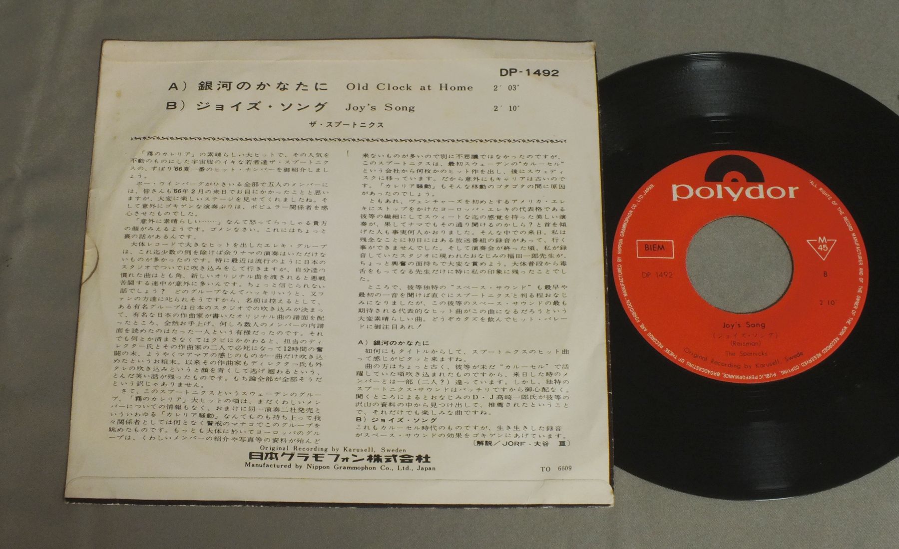 SPOTNICKSスプートニクス/OLD CLOCK AT HOME銀河のかなたに DP1492 製造国:日本盤 / Media:7inch外観:VG+盤の状態:EX 価格(税込):¥550 送料 7inch:定形外郵便 360円~LP:定形外郵便 660円~送料は、注文の最終画面で確認頂けます。 レコード検索 > SOUL > SPOTNICKS/OLD CLOCK AT HOME 外観 (VG+)特記事項:ヘリスレ多め。ヨレや薄いシミ多少有り。外観VG+の共通説明:ダメージやや有り。シミ、ヨゴレ、スレなど多少~やや多め。 盤の状態 (EX)特記事項:薄いスリキズ・スレ軽くある感じ。殆どが軽微なものの様子です。盤EXの共通説明:盤面のスリキズが薄いものが少し~軽度 音に出そうなものは無いように見える(軽微なソフトティック音は除く)。 Tweet それぞれの画像をクリックすると、大きい写真が見られます こちらの商品もお勧めです 2,640円 SPOTNICKSスプートニクス / KARELIA-THE BEST OF THE SPOTNICKS霧のカレリア-ベスト・オブ・ザ・スプートニクス 4,950円 ANIMALSアニマルズ / BEST ALBUM アニマルズのすべて 赤盤