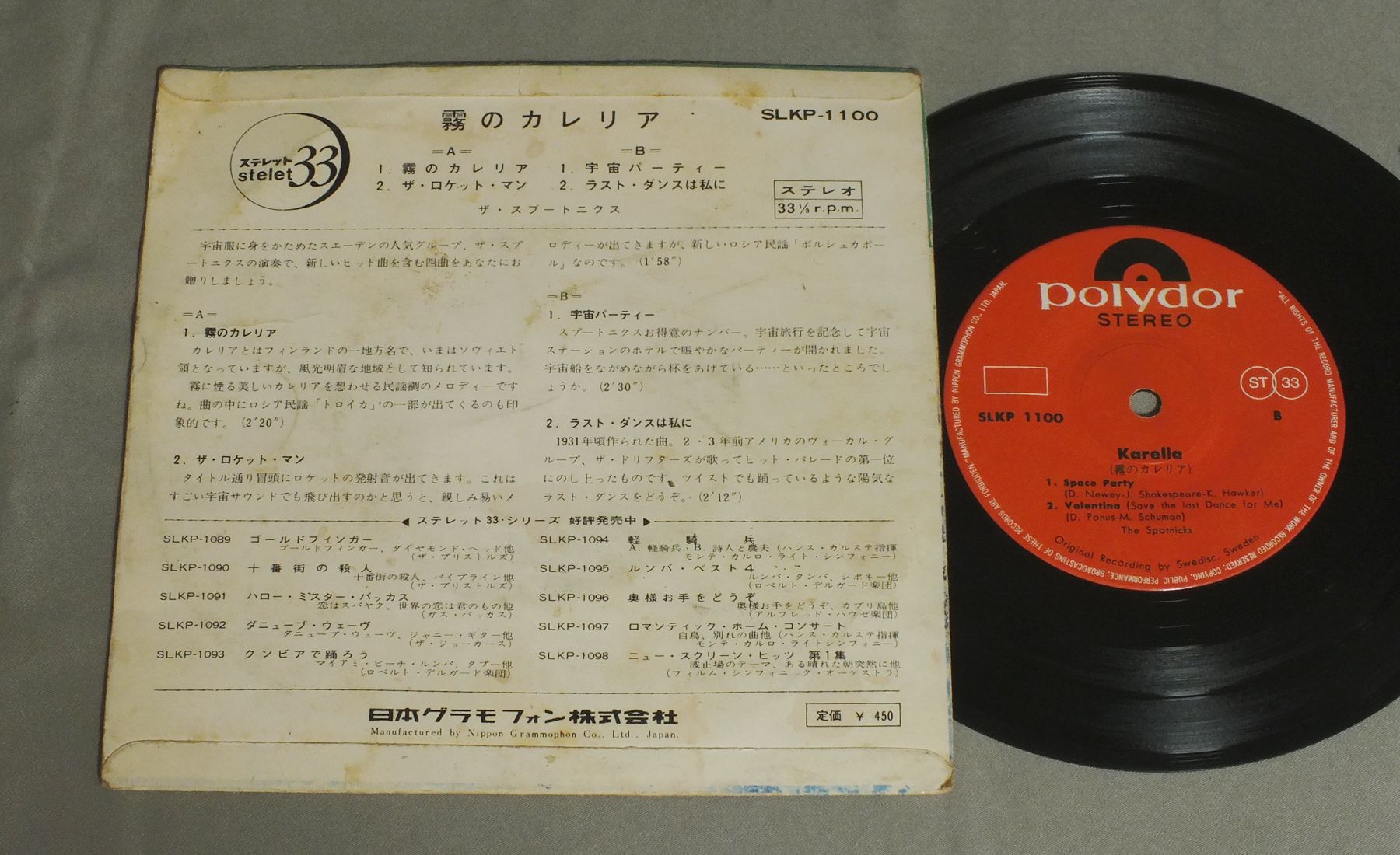 SPOTNICKSスプートニクス/KARELLA霧のカレリア SLKP1100 製造国:日本盤 / Media:7inch外観:VG+盤の状態:EX- 価格(税込):¥550 送料 7inch:定形外郵便 360円~LP:定形外郵便 660円~送料は、注文の最終画面で確認頂けます。 レコード検索 > 1980s–90s > SPOTNICKS/KARELLA 外観 (VG+)特記事項:ヘリスレ大。シミやスレ多め。外観VG+の共通説明:ダメージやや有り。シミ、ヨゴレ、スレなど多少~やや多め。 盤の状態 (EX-)特記事項:薄いスリキズ・細かい表面スレ多少ある感じです。プチ出そうな所は少し。軽微なものが中心の様子です。盤EX-の共通説明:盤面のスリキズが多少有り。音に出そうなものは殆ど無いように見える~さほど気にならないぐらいの軽いプチ数カ所程度。 Tweet それぞれの画像をクリックすると、大きい写真が見られます こちらの商品もお勧めです 2,640円 SPOTNICKSスプートニクス / KARELIA-THE BEST OF THE SPOTNICKS霧のカレリア-ベスト・オブ・ザ・スプートニクス 4,950円 ANIMALSアニマルズ / BEST ALBUM アニマルズのすべて 赤盤