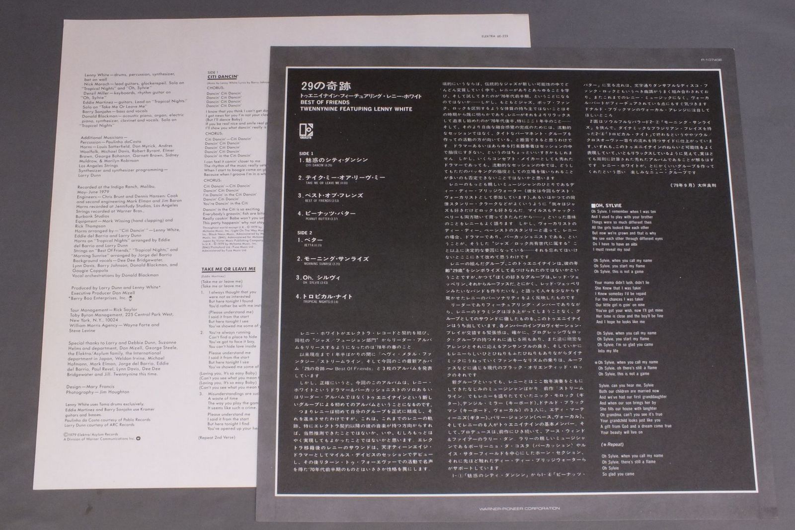 LENNY WHITEレニー・ホワイト/TWENNYNINE FEATURING LENNY WHITE29の奇跡/トゥエニイナイン フィーチュアリング・レニー・ホワイト P10743E 製造国:日本盤 / Media:LP外観:EX盤の状態:EX+帯:EX 価格(税込):¥990(売約済) 送料 7inch:定形外郵便 360円~LP:定形外郵便 660円~送料は、注文の最終画面で確認頂けます。 > > LENNY WHITE/TWENNYNINE FEATURING LENNY WHITE 外観 (EX)特記事項:特記なし。外観EXの共通説明:ダメージが限定的。中古品としては保存状態がよい方。シミ、ヨゴレ、スレ 少し~軽度。 盤の状態 (EX+)特記事項:極薄いスリキズ・スレ少し。一見してきれいな状態です。盤EX+の共通説明:盤面の極薄いスリキズ、スレ少し程度 音に出そうなものは無いように見える(極軽微なソフトティック音は除く)。 帯の状態 (EX):特記なし。 その他:白見本盤 Tweet それぞれの画像をクリックすると、大きい写真が見られます こちらの商品もお勧めです 990円 AL DI MEOLAアル・ディ・メオラ / SPLENDIDO HOTELスプレンディド・ホテル 1,210円 RETURN TO FOREVER FEATURING CHICK COREAリターン・トゥ・フォーエヴァー / NO MYSTERYノー・ミステリー 990円 BILLY COBHAMビリー・コブハム / SHABAZZシャバズ 770円 STANLEY JORDANスタンリー・ジョーダン / MAGIC TOUCHマジック・タッチ 880円 MEZZOFORTEメゾフォルテ / SURPRISE SURPRISEガーデン・パーティ 1,320円 SKYスカイ / SKY2スカイ 2 1,320円 FREDDIE HUBBARDフレディー・ハバード / WINDJAMMERウィンドジャマー 990円 RETURN TO FOREVERリターン・トゥ・フォーエヴァー / WHERE HAVE I KNOWN YOU BEFORE銀河の輝映