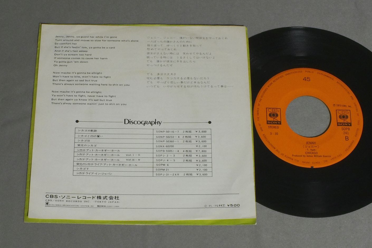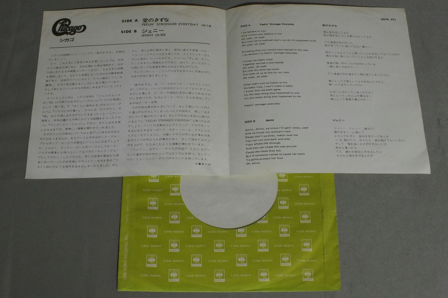 CHICAGOシカゴ/FEELIN` STRONGER EVERYDAY愛のきずな SOPB241 製造国:日本盤 / Media:7inch外観:EX盤の状態:EX 価格(税込):¥770 送料 7inch:定形外郵便 360円~LP:定形外郵便 660円~送料は、注文の最終画面で確認頂けます。 レコード検索 > CLASSIC ORCH. > CHICAGO/FEELIN` STRONGER EVERYDAY 外観 (EX)特記事項:薄いシミ多少有り。外観EXの共通説明:ダメージが限定的。中古品としては保存状態がよい方。シミ、ヨゴレ、スレ 少し~軽度。 盤の状態 (EX)特記事項:薄いスリキズ・スレ軽くある感じ。軽微なものの様子です。盤EXの共通説明:盤面のスリキズが薄いものが少し~軽度 音に出そうなものは無いように見える(軽微なソフトティック音は除く)。 Tweet それぞれの画像をクリックすると、大きい写真が見られます こちらの商品もお勧めです 990円 STYXスティクス / PIECES OF EIGHTピーンズ・オブ・エイト 古代への追想 1,650円 CHEAP TRICKチープ・トリック / DREAM POLICEドリーム・ポリス 1,320円 ROMANTICSロマンティックス / IN HEATイン・ヒート 660円 SNEAKERスニーカー / SNEAKER想い出のスニーカー 770円 MONKEESモンキーズ / GOLDEN ALBUMゴルデン・アルバム 1,320円 PARRIDGE FAMILYパートリッジ・ファミリー / SOUND MAGAZINE夢見るデビット 770円 STYXスティクス / CORNERSTONEコーナーストーン 660円 DOOBIE BROTHERSドゥービー・ブラザーズ / ONE STEP CLOSERワン・ステップ・クローサー