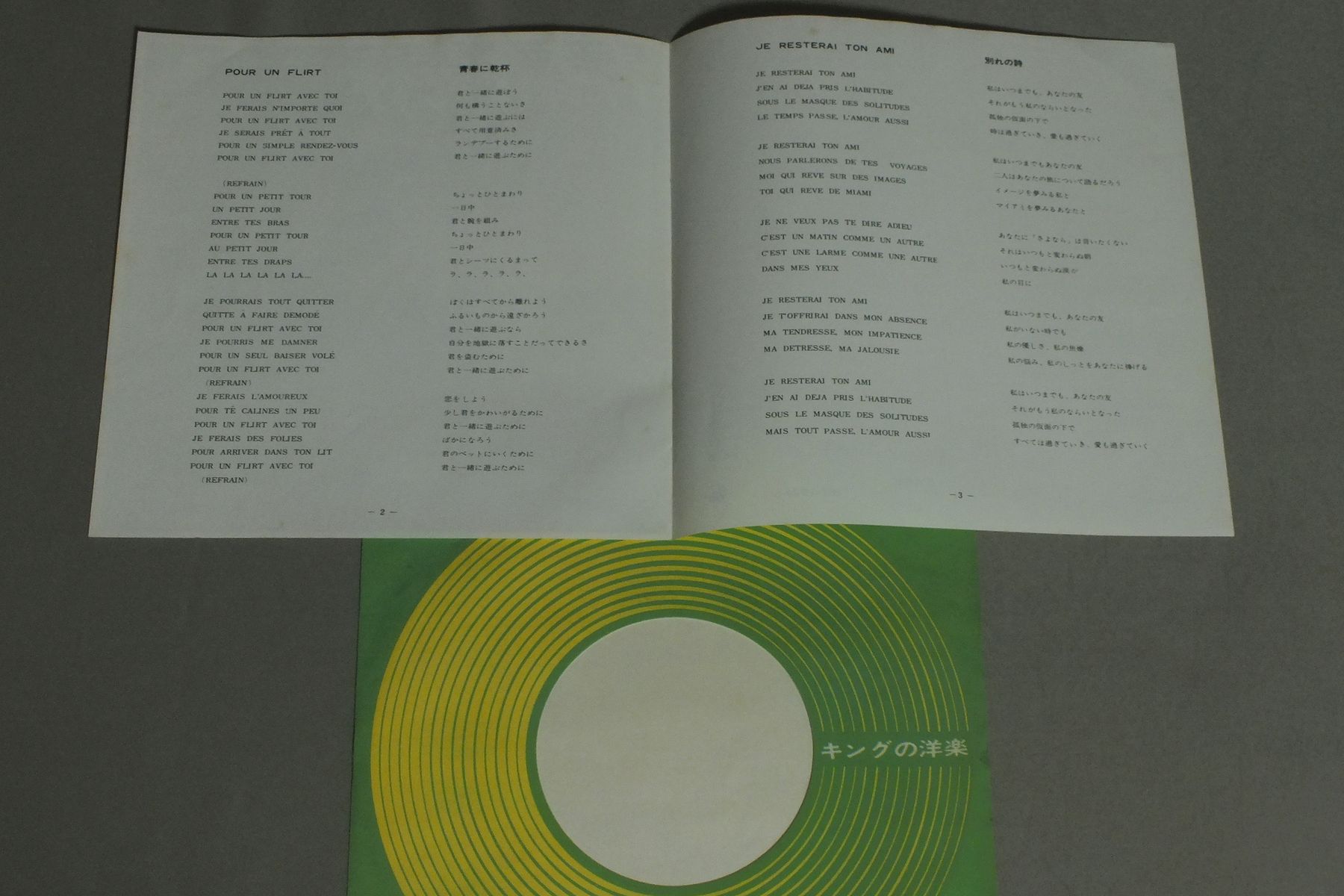 MICHEL DELPECHミッシェル・デルペッシュ/POUR UN FLIRT青春に乾杯 HIT1926 製造国:日本盤 / Media:7inch外観:EX盤の状態:EX+ 価格(税込):¥660 送料 7inch:定形外郵便 360円~LP:定形外郵便 660円~送料は、注文の最終画面で確認頂けます。 > > MICHEL DELPECH/POUR UN FLIRT 外観 (EX)特記事項:シミ少々。外観EXの共通説明:ダメージが限定的。中古品としては保存状態がよい方。シミ、ヨゴレ、スレ 少し~軽度。 盤の状態 (EX+)特記事項:極薄いスリキズ・スレ少し。一見してきれいな状態です。盤EX+の共通説明:盤面の極薄いスリキズ、スレ少し程度 音に出そうなものは無いように見える(極軽微なソフトティック音は除く)。 Tweet それぞれの画像をクリックすると、大きい写真が見られます こちらの商品もお勧めです 660円 AL STEWARTアル・スチュアート / TIME PASSAGESタイム・パッセージ 770円 YVES MONTANDイヴ・モンタン / WONDERFUL MELODIESイヴ・モンタン・ヒット集 1,210円 ADAMOアダモ / ALL ABOUT ADAMO DELUXE DOUBLEデラックス・ダブル アダモのすべて 660円 NEIL DIAMONDニール・ダイアモンド / LOVE AT THE GREEKラブ・アット・ザ・グリーク ニール・ダイアモンド・ベスト・ライブ 440円 JACKSON BROWNEジャクソン・ブラウン / LAWYERS IN LOVE愛の使者 550円 TOM JONESトム・ジョーンズ / LIVE IN LAS VEGASライヴ・イン・ラスヴェガス 2,420円 BILLY JOELビリー・ジョエル / NYLON CURTEN MASTER SOUND PRESSINGナイロン・カーテン(マスター・サウンド盤) 440円 MAX CARLマックス・カール / CIRCLEサークル