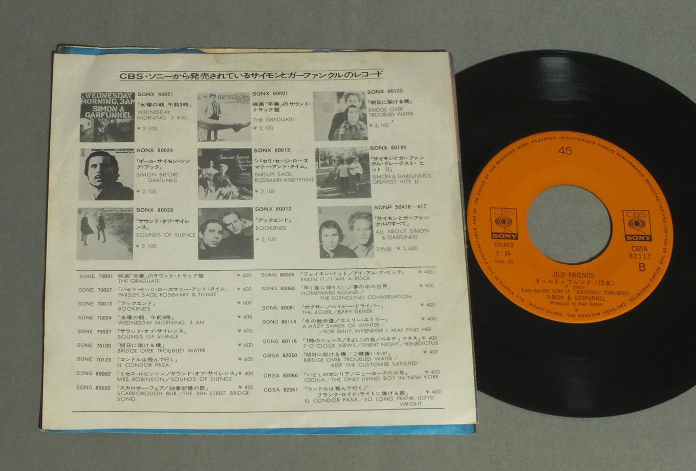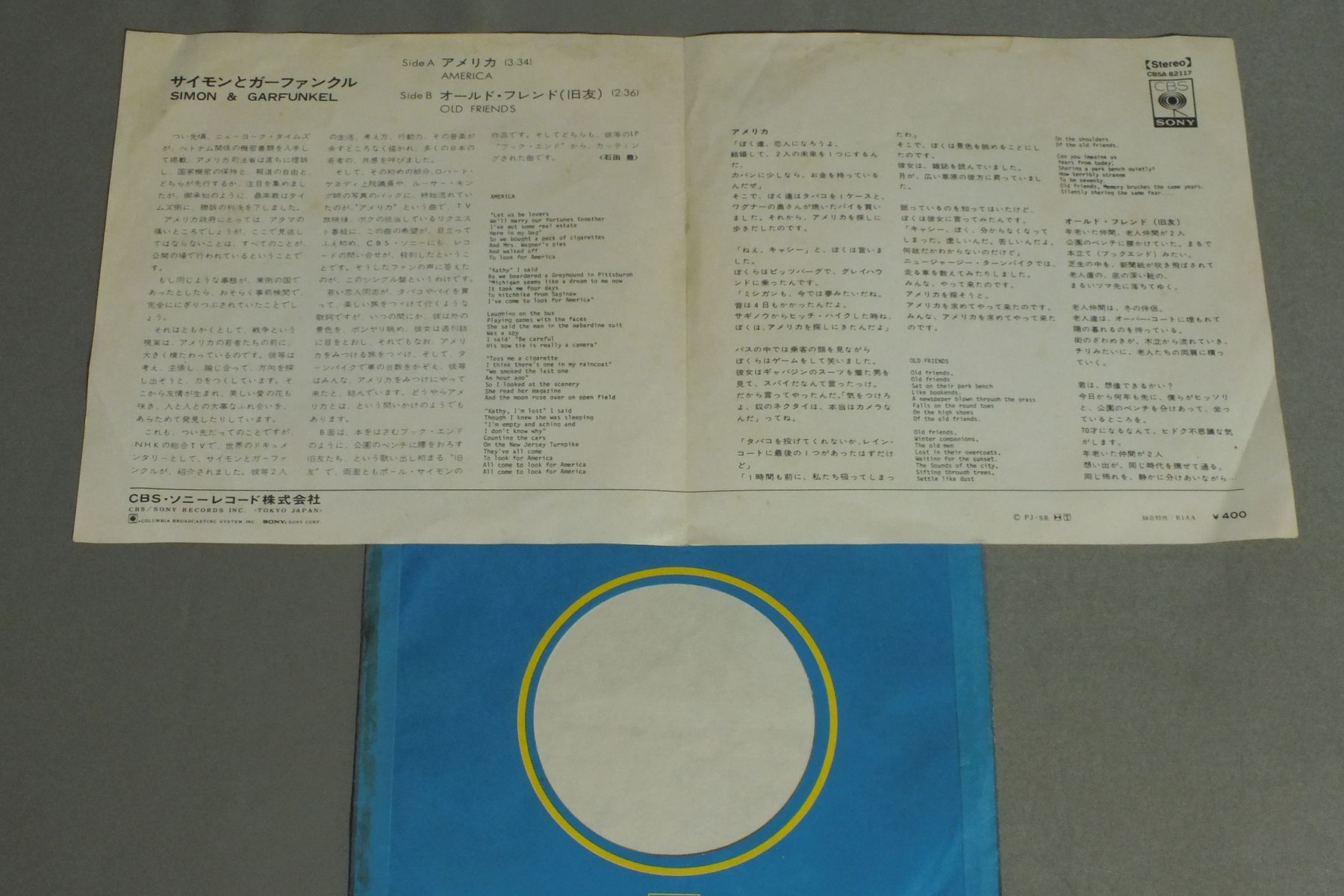 SIMON & GARFUNKELサイモンとガーファンクル/AMERICAアメリカ CBSA82117 製造国:日本盤 / Media:7inch外観:EX-盤の状態:EX 価格(税込):¥550 送料 7inch:定形外郵便 360円~LP:定形外郵便 660円~送料は、注文の最終画面で確認頂けます。 レコード検索 > J-POP > SIMON & GARFUNKEL/AMERICA 外観 (EX-)特記事項:折れ跡が少し。シミ多少有り。外観EX-の共通説明:ダメージ軽度~多少。 中古品としては普通の状態。シミ、ヨゴレ、スレなど軽く~多少。 盤の状態 (EX)特記事項:薄いスリキズ・スレ軽くある感じ。軽微なものの様子です。盤EXの共通説明:盤面のスリキズが薄いものが少し~軽度 音に出そうなものは無いように見える(軽微なソフトティック音は除く)。 Tweet それぞれの画像をクリックすると、大きい写真が見られます こちらの商品もお勧めです 990円 TONY ORLANDO & DAWNトニー・オーランド&ドーン / HE DON`T LOVE YOU(LIKE I LOVE YOU)恋のシーソー・ゲーム 660円 SNEAKERスニーカー / SNEAKER想い出のスニーカー 770円 MONKEESモンキーズ / GOLDEN ALBUMゴルデン・アルバム 770円 PABLO CRUISEパブロ・クルーズ / REFLECTORリフレクター 1,320円 ASTRONAUTSアストロノウツ / ASTRONAUTSアストロノウツ・ベスト 770円 MONKEESモンキーズ / PISCES AQUARIUS CAPRICORN &JONES LTD.スター・コレクター 1,210円 MISSING PERSONSミッシング・パーソンズ / SPRING SESSION Mスプリング・セッションM 550円 CHICAGOシカゴ / GREAT CHICAGO栄光のシカゴ