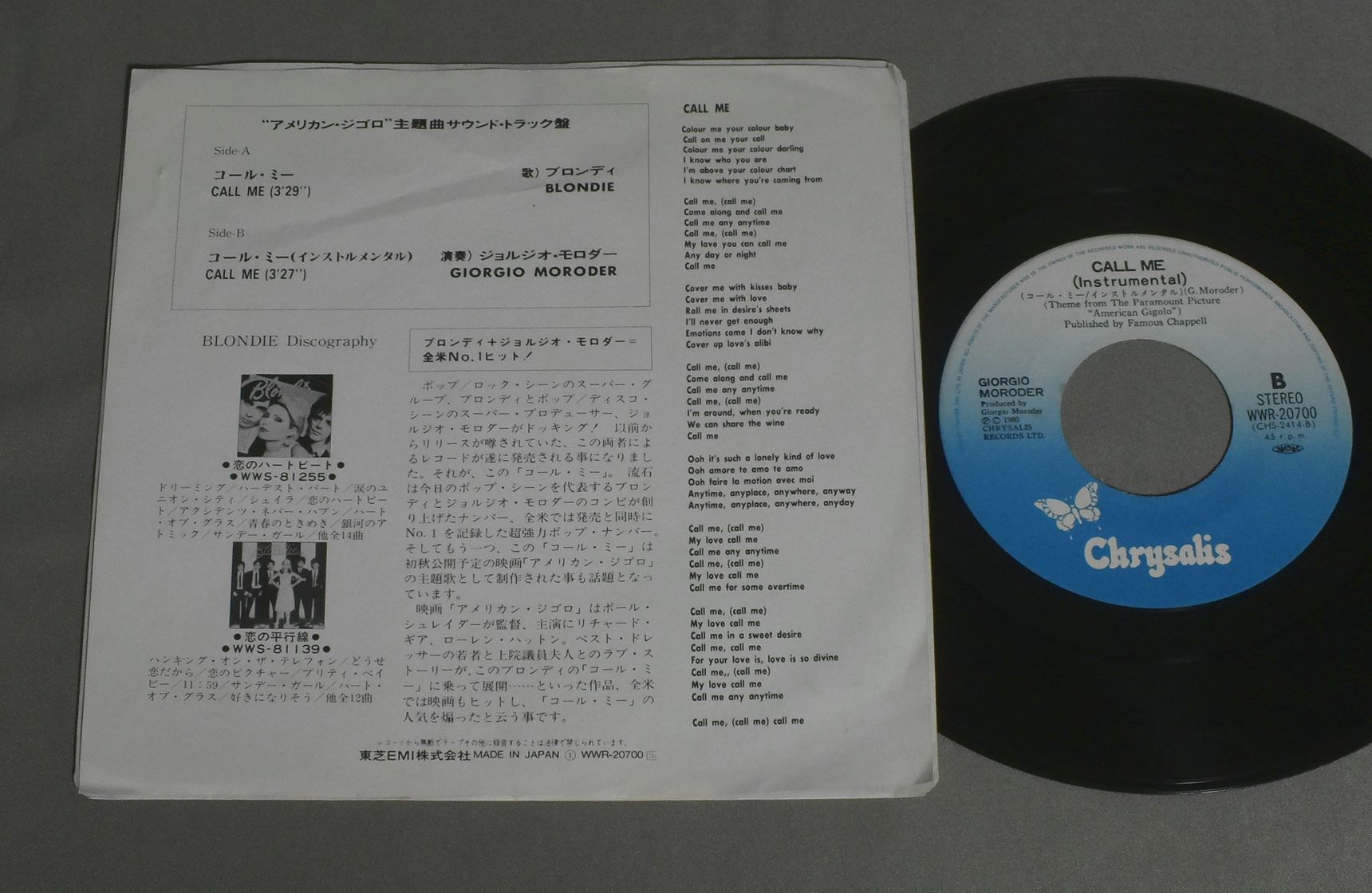 BLONDIEブロンディ/CALL MEコール・ミー WWR20700 製造国:日本盤 / Media:7inch外観:EX盤の状態:EX 価格(税込):¥440 送料 7inch:定形外郵便 360円~LP:定形外郵便 660円~送料は、注文の最終画面で確認頂けます。 > > BLONDIE/CALL ME 外観 (EX)特記事項:ヨレ有り。外観EXの共通説明:ダメージが限定的。中古品としては保存状態がよい方。シミ、ヨゴレ、スレ 少し~軽度。 盤の状態 (EX)特記事項:薄いスリキズ・スレ少しある感じ。一見してきれいな感じです。盤EXの共通説明:盤面のスリキズが薄いものが少し~軽度 音に出そうなものは無いように見える(軽微なソフトティック音は除く)。 Tweet それぞれの画像をクリックすると、大きい写真が見られます こちらの商品もお勧めです 1,320円 DOOL BY DOOLドール・バイ・ドール / GYPSY BLOODジプシー・ブラッド 1,320円 KEVIN ROWL & DEXYS MIDNIGHT RUNNERSテキシーズ・ミッドナイト・ランナーズ / TOO-RYE-AY女の泪はワザモンだ!! 770円 BOOMTOWN RATSブームタウン・ラッツ / MONDO BONGOモンド・ボンゴ 770円 ADAM AND THE ANTS / KINGS OF THE WILD FRONTIER 1,650円 BLONDIEブロンディ / EAT TO THE BEAT恋のハートビート 1,320円 BLONDIEブロンディ / AUTOAMERICANオート・アメリカン 770円 CULTURE CLUB / KISSING TO BE CLEVER 1,320円 ADAM AND THE ANTSアダム&ジ・アンツ / KINGS OF THE WILD FRONTIERアダムの王国