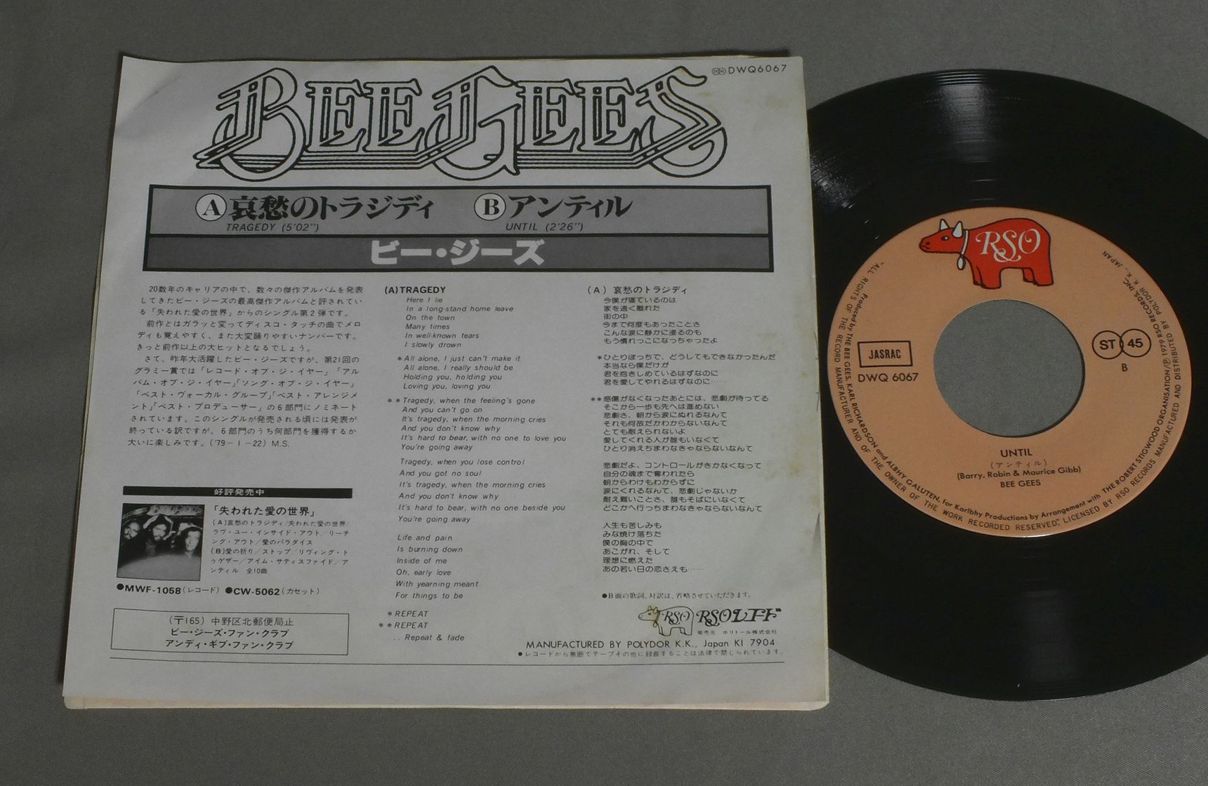 BEE GEESビー・ジーズ/TRAGEDY哀愁のトラジディ DWQ6067 製造国:日本盤 / Media:7inch外観:EX盤の状態:EX 価格(税込):¥550 送料 7inch:定形外郵便 360円~LP:定形外郵便 660円~送料は、注文の最終画面で確認頂けます。 レコード検索 > 1980s–90s > BEE GEES/TRAGEDY 外観 (EX)特記事項:裏側にシミやや有り。ヨレが少し。外観EXの共通説明:ダメージが限定的。中古品としては保存状態がよい方。シミ、ヨゴレ、スレ 少し~軽度。 盤の状態 (EX)特記事項:薄いスリキズ・スレ少しある感じ。一見してきれいな感じです。盤EXの共通説明:盤面のスリキズが薄いものが少し~軽度 音に出そうなものは無いように見える(軽微なソフトティック音は除く)。 Tweet それぞれの画像をクリックすると、大きい写真が見られます こちらの商品もお勧めです 990円 BEE GEESビー・ジーズ / SPIRITS HAVING FLOWN失われた愛の世界 1,320円 WHAMワム / MAKE IT BIGメイク・イット・ビッグ 1,210円 BEE GEESビー・ジーズ / SOUNDTRACK STAYING ALIVE映画 ステイン・アライヴ 1,650円 WILLIE & THE POOR BOYSウィリーとプア・ボーイズ / ACTION FOR RESEARCH INTO MULTIPLE SCLEROSISロニー・レイン救済基金 1,650円 TEN YEARS AFTERテン・イヤーズ・アフター / CRICKLEWOOD GREENクリックルウッド・グリーン 1,210円 DUKESデュークス / 1st ALBUM運命の旅立ち 770円 ABBAアバ / VOULEZ-VOUSヴーレ・ヴー 1,320円 WILLIE & THE POOR BOYSウィリーとプア・ボーイズ / ACTION FOR RESEARCH INTO MULTIPLE SCLEROSISロニー・レイン救済基金