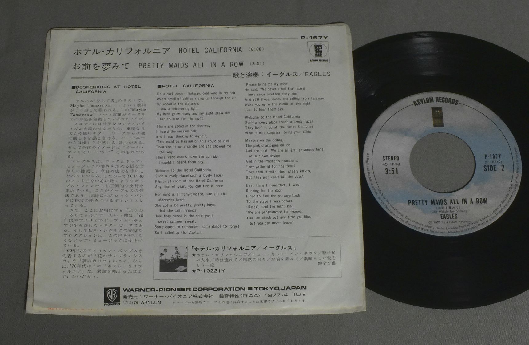 EAGLESイーグルス/HOTEL CALIFORNIAホテル・カリフォルニア P167Y 製造国:日本盤 / Media:7inch外観:EX-盤の状態:EX 価格(税込):¥550 送料 7inch:定形外郵便 360円~LP:定形外郵便 660円~送料は、注文の最終画面で確認頂けます。 レコード検索 > J-POP > EAGLES/HOTEL CALIFORNIA 外観 (EX-)特記事項:薄いシミ有り。外観EX-の共通説明:ダメージ軽度~多少。 中古品としては普通の状態。シミ、ヨゴレ、スレなど軽く~多少。 盤の状態 (EX)特記事項:薄いスリキズ・スレ軽くある感じ。軽微なものの様子です。盤EXの共通説明:盤面のスリキズが薄いものが少し~軽度 音に出そうなものは無いように見える(軽微なソフトティック音は除く)。 Tweet それぞれの画像をクリックすると、大きい写真が見られます こちらの商品もお勧めです 770円 STYXスティクス / CORNERSTONEコーナーストーン 770円 SNEAKERスニーカー / LOOSE IN THE WORLDルーズ・イン・ザ・ワールド 770円 SANTANAサンタナ / INNER SECRETS太陽の秘宝 550円 GRAND FUNK RAILROADグランド・ファンク・レイルロード / CAUGHT IN THE ACTグランド・ファンク・ツアー75 1,540円 FIREFALLファイアフォール / CLOUDS ACROSS THE SUNロッキーの夕陽 1,320円 ABC / BEAUTY STABビューティ・スタッブ 770円 SANTANAサンタナ / WELCOMEウェルカム 770円 MARC TANNER BANDマーク・タナー・バンド / TEMPTATIONテンプテーション