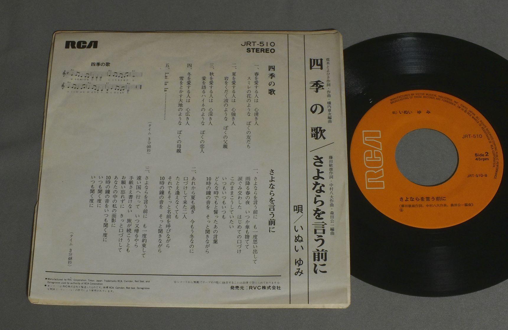 YUMI INUIいぬい ゆみ/SHIKI NO UTA四季の歌 JRT510 製造国:日本盤 / Media:7inch外観:EX盤の状態:EX- 価格(税込):¥550 送料 7inch:定形外郵便 360円~LP:定形外郵便 660円~送料は、注文の最終画面で確認頂けます。 レコード検索 > 全てのジャンル > YUMI INUI/SHIKI NO UTA 外観 (EX)特記事項:ヨレやシミ軽く有り。外観EXの共通説明:ダメージが限定的。中古品としては保存状態がよい方。シミ、ヨゴレ、スレ 少し~軽度。 盤の状態 (EX-)特記事項:薄いスリキズ・細かい表面スレ軽くある感じ。全体的には殆どが軽微なものの様子です。盤EX-の共通説明:盤面のスリキズが多少有り。音に出そうなものは殆ど無いように見える~さほど気にならないぐらいの軽いプチ数カ所程度。 Tweet それぞれの画像をクリックすると、大きい写真が見られます こちらの商品もお勧めです 1,650円 UCHOTEN有頂天 / PEACEピース 770円 HIROMI IWASAKI岩崎宏美 / HIKOUSEN飛行船 770円 YASUKO NAITOH内藤やす子 / NAINAI ZUKUSHIないないづくし 1,320円 OKAWARI SISTERSおかわりシスターズ / L.A.S.Tラ・ス・ト カレンダー付 1,210円 CANDIESキャンディーズ / SOUSHUNPU 早春譜 770円 EPOエポ / PUMP ! PUMP ! 880円 TULIPチューリップ / LIVE ACT TULIPライヴ アクト・チューリップ 770円 CHAGE & ASUKAチャゲ&飛鳥 / 熱風