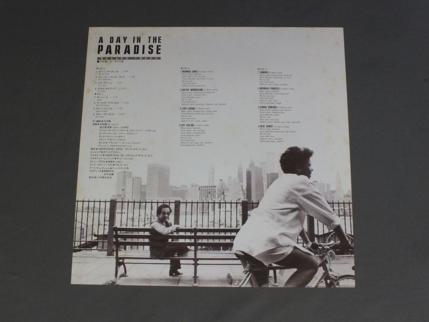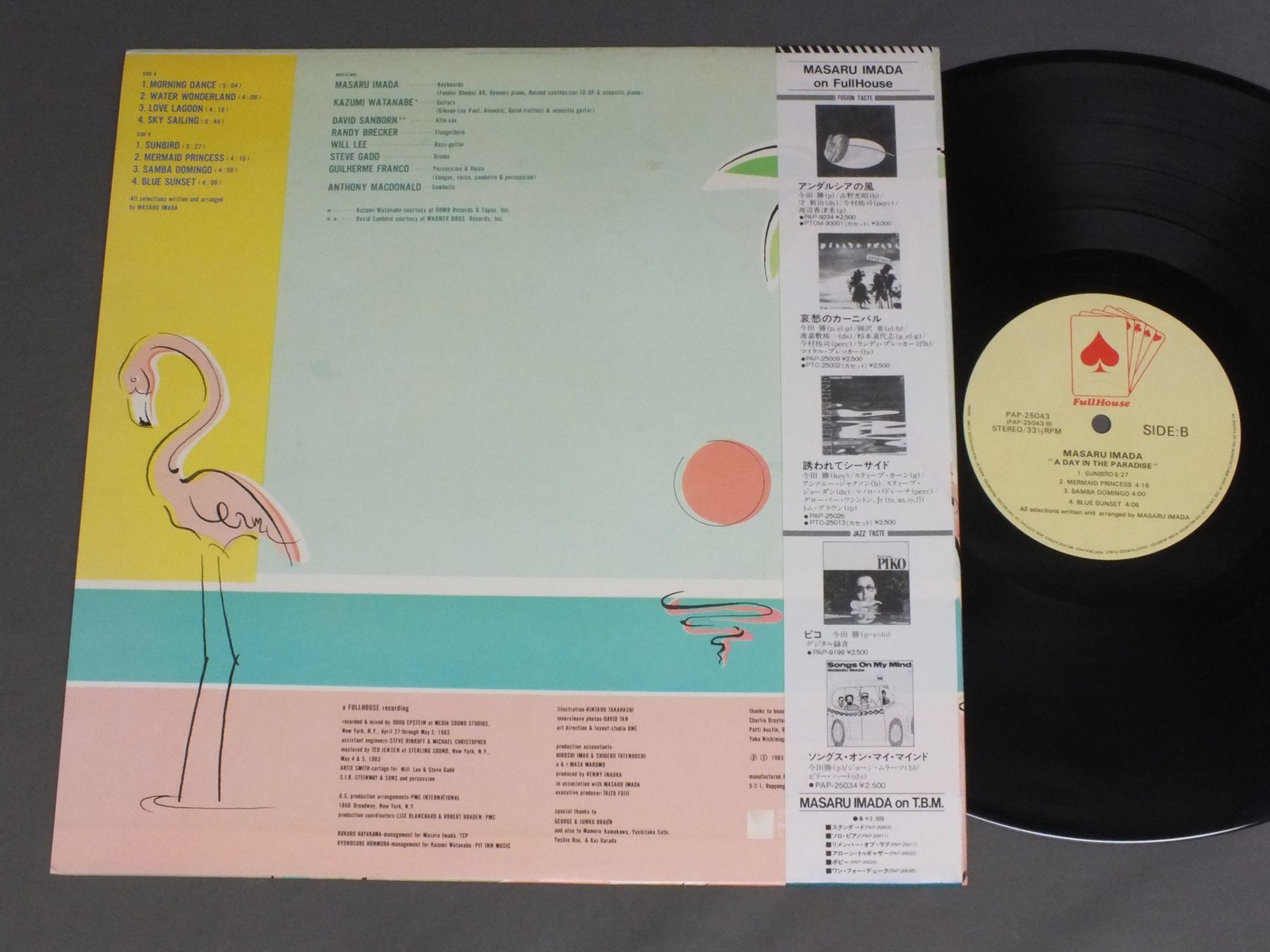 MASARU IMADA今田勝/DAY IN THE PARADISEコーラルの渚 PAP25043 製造国:日本盤 / Media:LP外観:EX-盤の状態:EX+帯:EX+ 価格(税込):¥1,166(売約済) 送料 7inch:定形外郵便 360円~LP:定形外郵便 660円~送料は、注文の最終画面で確認頂けます。 > > MASARU IMADA/DAY IN THE PARADISE 外観 (EX-)特記事項:ジャケ表面や解説カードにシミ軽有り外観EX-の共通説明:ダメージ軽度~多少。 中古品としては普通の状態。シミ、ヨゴレ、スレなど軽く~多少。 盤の状態 (EX+)特記事項:極薄いスリキズ・スレ少し。一見してきれいな状態です。盤EX+の共通説明:盤面の極薄いスリキズ、スレ少し程度 音に出そうなものは無いように見える(極軽微なソフトティック音は除く)。 帯の状態 (EX+):特記なし。 Tweet それぞれの画像をクリックすると、大きい写真が見られます こちらの商品もお勧めです 770円 MIKE ELLIS / WHAT ELSE IS NEW? 770円 HERBIE MANNハービー・マン / HOLD ON. I`M COMIN`ホールド・オン 770円 TEDDY CHARLES TENTETテディ・チャールズ・テンテット / TEDDY CHARLES TENTETテディ・チャールズ・テンテット 990円 TERUMASA HINO日野皓正 / JOURNEY INTO MY MIND 880円 SADAO WATANABE渡辺貞夫 / MY DEAR LIFEマイ・ディア・ライフ 1,320円 ART BLAKEY`S JAZZ MESSENGERSアート・ブレイキー / LES LIAISONS DANGEREUSES 1960危険な関係 770円 SONYA ROBINSONソニア・ロビンソン / SONYAソニア 770円 CHARLIE PARKERチャーリー・パーカー / CHARLIE PARKER ON SAVOY VOL7チャーリー・パーカー・オン・サヴォイVOL7