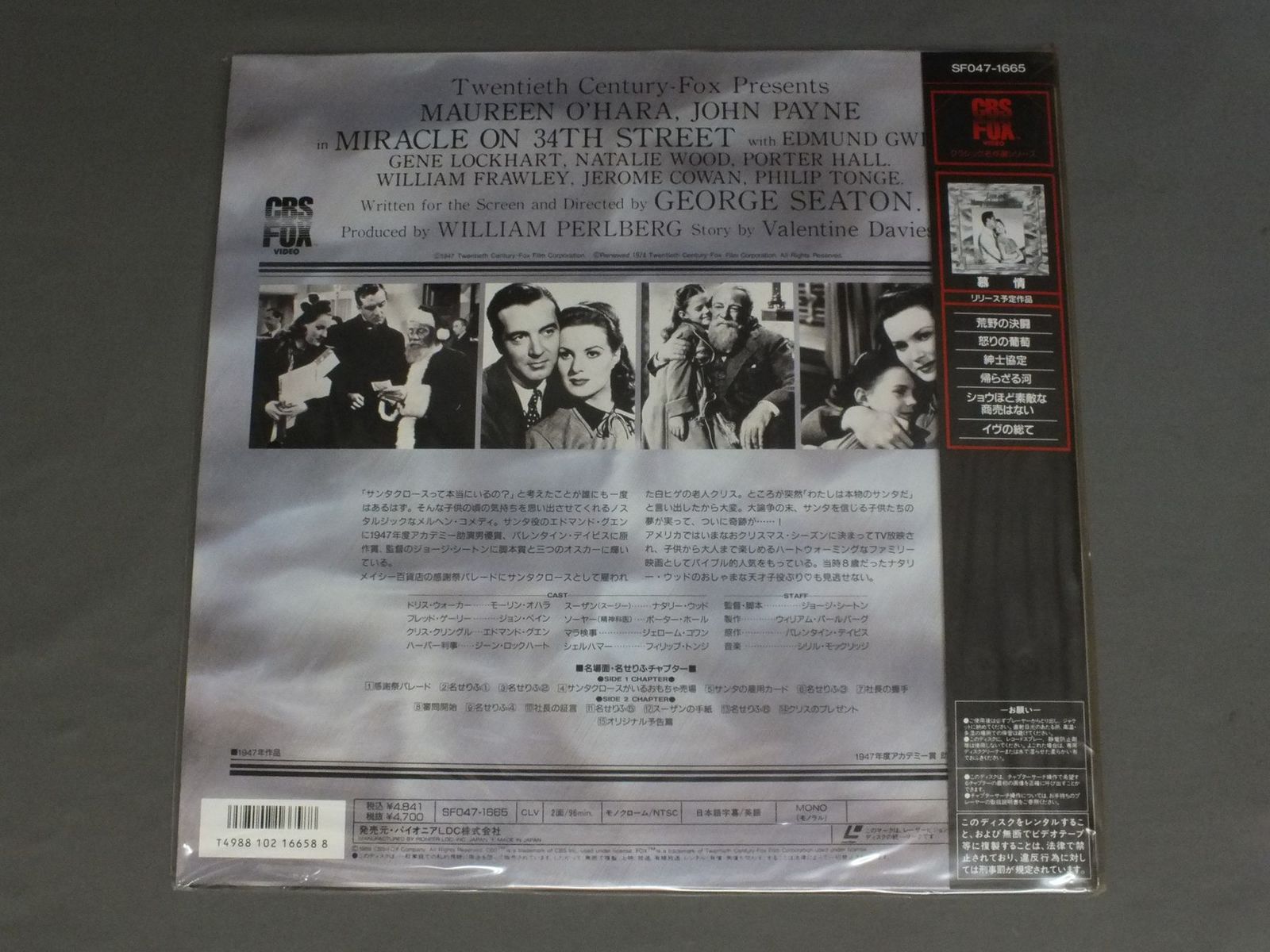 GEORGE SEATONジョージ・シートン/MIRACLE ON 34TH STREET映画34丁目の奇蹟 SF047 1665 製造国:日本盤 / Media:LD外観:EX+盤の状態:M帯:EX+ 価格(税込):¥440 送料 7inch:定形外郵便 360円~LP:定形外郵便 660円~送料は、注文の最終画面で確認頂けます。 > > GEORGE SEATON/MIRACLE ON 34TH STREET 外観 (EX+)特記事項:未開封外観EX+の共通説明:中古としては美品、一見してきれいでダメージが軽微。シミ、ヨゴレ、スレ有っても僅か~少し。 盤の状態 (M)特記事項:未開封盤Mの共通説明:新品。 帯の状態 (EX+):特記なし。 Tweet それぞれの画像をクリックすると、大きい写真が見られます こちらの商品もお勧めです 1,980円 OSAMU TEDUKA手塚治虫 / ORIGINAL SOUNDTRACK PHOENIX 2772オリジナルサウンドトラック 火の鳥2772 音楽集