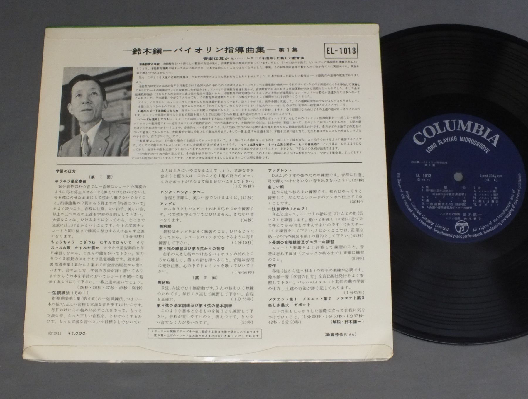 SUZUKI SHINICHI (Suzuki method)鈴木鎮一 - 鈴木静子/PRACTICE MUSIC VOL.1鈴木鎮一バイオリン指導曲集第1集 EL1013 製造国:日本盤 / Media:10inch外観:EX盤の状態:EX- 価格(税込):¥2,860 送料 7inch:定形外郵便 360円~LP:定形外郵便 660円~送料は、注文の最終画面で確認頂けます。 レコード検索 > 全てのジャンル > SUZUKI SHINICHI (Suzuki method)/PRACTICE MUSIC VOL.1 外観 (EX)特記事項:特記なし。外観EXの共通説明:ダメージが限定的。中古品としては保存状態がよい方。シミ、ヨゴレ、スレ 少し~軽度。 盤の状態 (EX-)特記事項:薄いスリキズ・細かい表面スレ軽くある感じ。全体的には殆どが軽微なものの様子です。盤EX-の共通説明:盤面のスリキズが多少有り。音に出そうなものは殆ど無いように見える~さほど気にならないぐらいの軽いプチ数カ所程度。 Tweet それぞれの画像をクリックすると、大きい写真が見られます こちらの商品もお勧めです 990円 RICHTER - MUNICH BACH ORCHESTRAリヒター‐ミュンヘン・バッハ管弦楽団 / BACH - BRANDENBURG CONCERTOS No.1 3 & 6バッハ ‐ ブランデンベルク協奏曲第1番3番6番 990円 J.-F.PAILLARDジャン=フランソワ・パイヤール / J.-F.PAILLARD CONCERT DE BAROQUEパイヤール・バロック・コンサ−ト 1,320円 HANS-MARTIN LINDEハンス・マルティン・リンデ / ZAUBER DER FLOTEバロック・フルートの魅力 1,430円 ZVEREVズヴェレフ / VIRTUOSITY OF FLUTEフルートの名技 990円 SMETANA QUARTETスメタナ四重奏団 / SCHUBERT - DEATH & THE MAIDENシューベルト - 弦楽四重奏曲大14番 990円 BOSKOVSKYボスコフスキー / MOZART SERENADE NO7 K250`HAFFNER`モーツァルト セレナード 第7番`ハフナー` 990円 ENSEMBLE BAROQUE DE PARISパリ・バロック・アンサンブル / L`EUROPE BAROQUEヨーロッパ・バロック音楽の都 990円 OISTRAKHオイストラッフ / BACH - SONATASバッハ - ヴァイオリン奏鳴曲第5番6番