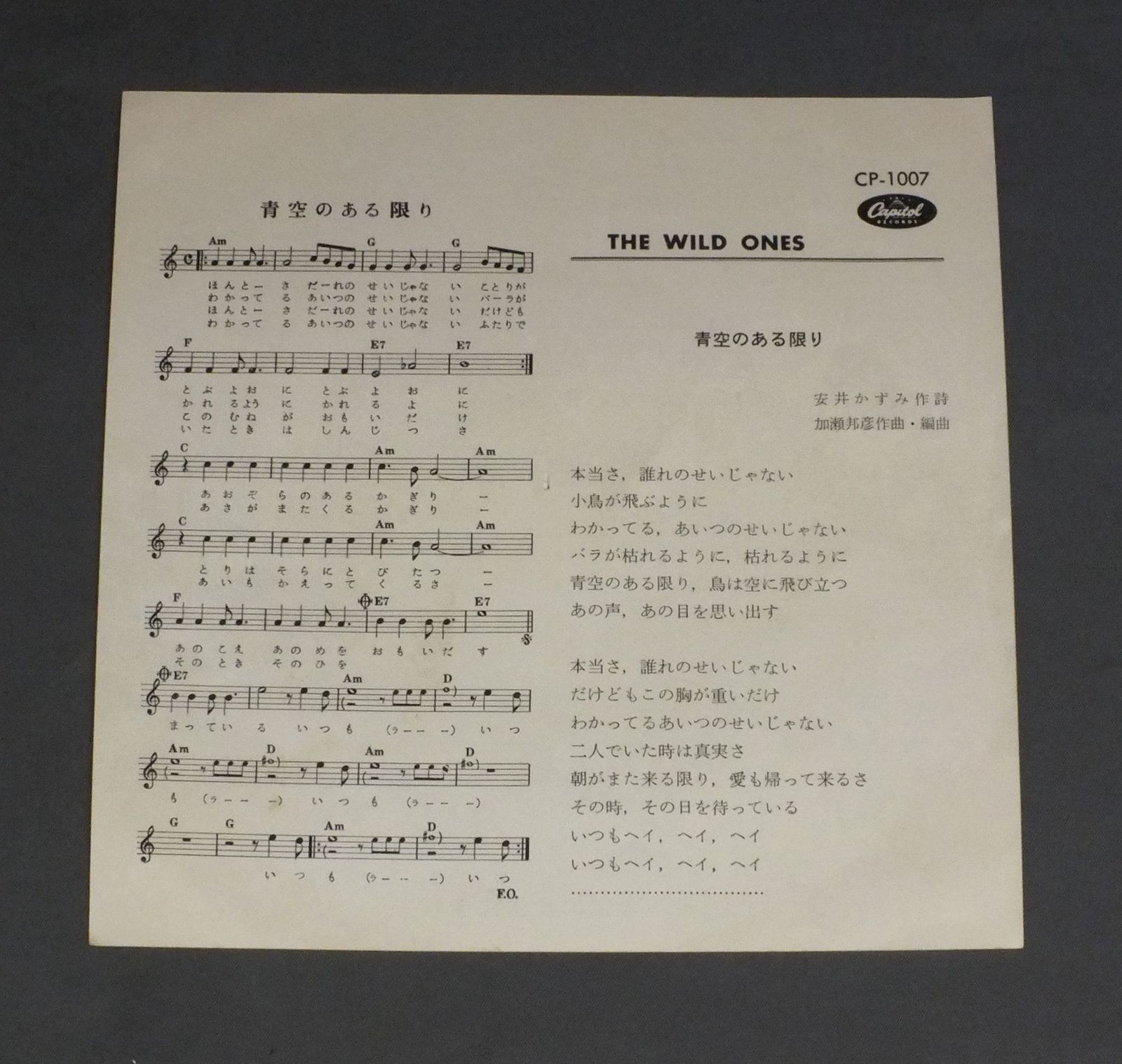 WILD ONESワイルド・ワンズ/AOZORA NO ARUKAGIRI青空のある限り CP1007 製造国:日本盤 / Media:7inch外観:EX-盤の状態:EX+ 価格(税込):¥550 送料 7inch:定形外郵便 360円~LP:定形外郵便 660円~送料は、注文の最終画面で確認頂けます。 レコード検索 > FEMALE > WILD ONES/AOZORA NO ARUKAGIRI 外観 (EX-)特記事項:ヨレや短いキズ等有り外観EX-の共通説明:ダメージ軽度~多少。 中古品としては普通の状態。シミ、ヨゴレ、スレなど軽く~多少。 盤の状態 (EX+)特記事項:薄いスリキズ・スレ少し。一見してきれいな状態です。盤EX+の共通説明:盤面の極薄いスリキズ、スレ少し程度 音に出そうなものは無いように見える(極軽微なソフトティック音は除く)。 Tweet それぞれの画像をクリックすると、大きい写真が見られます こちらの商品もお勧めです 3,850円 OXオックス / FIRST ALBUMファースト・アルバム 1,320円 YUZO KAYAMA & LAUNCHERS加山雄三とランチャーズ / 1st ALBUM ( REISSUE )青春・愛その時 (幻の1st ALBUM ) 660円 YUZO KAYAMA加山雄三 / AISURUTOKIHA IMA愛する時は今 550円 TAKESHI TERAUCHI & THE BUNNYS寺内タケシとバニーズ / LET`S GO CLASSICSレッツ・ゴー運命 770円 YUZO KAYAMA加山雄三 / GOLDEN ALBUMゴールデン・アルバム(あなたと共に)赤盤 1,320円 TAKESHI TERAUCHI & BLUEJEANS寺内タケシとブルー・ジーンズ / ELECTRIC GUITAR SONGS WITHOUT SONG歌のないエレキ歌謡曲 1,210円 TIGERSタイガース / TIGERS 1982十年ロマンス 1,210円 WILD ONES加瀬邦彦とワイルドワンズ / ON THE BEACH`82オン・ザ・ビーチ`82