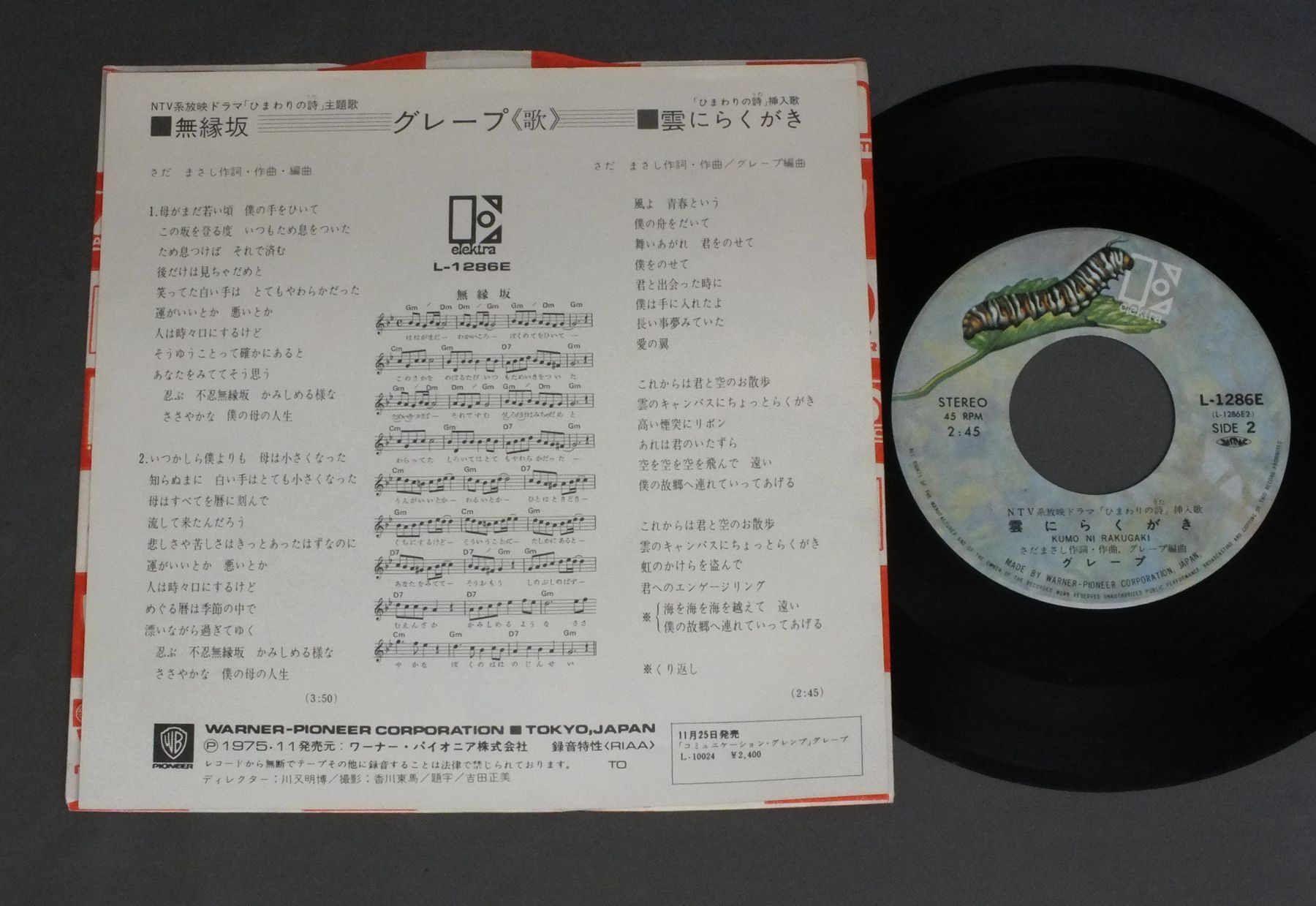 GRAPEグレープ/MUENZAKA無縁坂 L1286E 製造国:日本盤 / Media:7inch外観:EX+盤の状態:EX+ 価格(税込):¥825 送料 7inch:定形外郵便 360円~LP:定形外郵便 660円~送料は、注文の最終画面で確認頂けます。 レコード検索 > CLASSIC ETC > GRAPE/MUENZAKA 外観 (EX+)特記事項:特記なし。外観EX+の共通説明:中古としては美品、一見してきれいでダメージが軽微。シミ、ヨゴレ、スレ有っても僅か~少し。 盤の状態 (EX+)特記事項:極薄いスリキズ・スレ少し。一見してきれいな状態です。盤EX+の共通説明:盤面の極薄いスリキズ、スレ少し程度 音に出そうなものは無いように見える(極軽微なソフトティック音は除く)。 Tweet それぞれの画像をクリックすると、大きい写真が見られます こちらの商品もお勧めです 770円 MAYUMI ITSUWA五輪真弓 / MICHI岐路(みち) 770円 TULIPチューリップ / BOKU GATSUKUTTA AINO UTAぼくがつくった愛のうた 1,210円 EIKICHI YAZAWA矢沢永吉 / RISING SUNライジング・サン 770円 TAKURO YOSHIDA吉田拓郎 / OHINARU HITO大いなる人 770円 SAKURA & ICHIROUさくらと一郎 / SHOWA KARESUSUKI昭和枯れすすき 990円 MAYUMI ITUWA五輪真弓 / SHUNNSHUU春愁 770円 FINGER 5フィンガー5 / 1st ALBUM 880円 SUGIYAMA-K杉山清貴 / KONA WEATHER