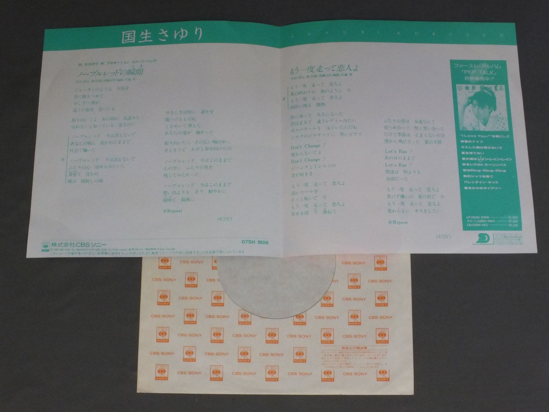 SAYURI KOKUSHO国生さゆり/NOBLE RED NO TOKIノーブルレッドの瞬間 07SH1806 製造国:日本盤 / Media:7inch外観:EX盤の状態:EX+ 価格(税込):¥660 送料 7inch:定形外郵便 360円~LP:定形外郵便 660円~送料は、注文の最終画面で確認頂けます。 レコード検索 > J-POP > SAYURI KOKUSHO/NOBLE RED NO TOKI 外観 (EX)特記事項:特記なし。外観EXの共通説明:ダメージが限定的。中古品としては保存状態がよい方。シミ、ヨゴレ、スレ 少し~軽度。 盤の状態 (EX+)特記事項:極薄いスリキズ・スレ少し。一見してきれいな状態です。盤EX+の共通説明:盤面の極薄いスリキズ、スレ少し程度 音に出そうなものは無いように見える(極軽微なソフトティック音は除く)。 Tweet それぞれの画像をクリックすると、大きい写真が見られます こちらの商品もお勧めです 770円 SHOKO SAWADA沢田聖子 / SHOKO LIVE 770円 NAOKO KAWAI河合奈保子 / LOVEラブ 990円 SONOKO KAWAI河合その子 / SIESTAシエスタ 990円 PINK LADYピンク・レディー / BYE BYE CARNIVALバイ・バイ・カーニバル 1,210円 YUKO TOMITAとみたゆう子 / CLASSICAL HEARTクラシカル・ハート 660円 YUKO ISHIKAWA石川優子 / SENTIMENTAL ROADセンチメンタル・ロード 660円 TOSHIRO OHMI近江俊郎 / BEST COLLECTION懐かしの歌声デラックス 湯の町エレジー 990円 MINAYO WATANABE渡辺美奈代 / ALFALFAアルファルファ